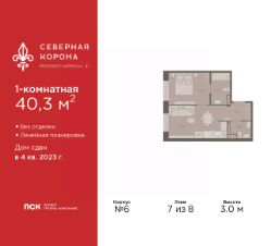 Просторная однокомнатная квартира в ЖК ''Северная корона'' на 7 этаже. Квартира без отделки, полностью готова к ремонту. Общая площадь: 40.3 кв.м., жилая: 11.64 кв.м., площадь просторной кухни-столовой: 16.97 кв.м. Все окна выходят на одну сторону. В квартире один совмещенный и один раздельный санузел. Высота потолков 3.0 м. Квартира находится в корпусе 6. Дом монолитный, одноподъездный, высотой 8 этажей. На этаже 6 квартир. В подъезде 1 грузовой лифт. На сегодняшний день строительство окончено, дом сдан в 4 квартале 2023 года. Оформление сделки по договору купли-продажи. В шаговой доступности от жилого комплекса находятся станции метро (расстояние по прямой): ''Петроградская'' (500 м), ''Чкаловская'' (1.3 км), ''Горьковская'' (1.7 км), ''Чёрная речка'' (1.7 км), также недалеко от этого корпуса находятся станции метро: ''Чернышевская'', ''Спортивная''. Премиальный жилой комплекс ''Северная корона'' расположился в парадной части Петроградской стороны на пересечении ее главного проспекта — Каменноостровского и набережной реки Карповки. Утончённость и изысканность Петроградской стороны заключается в ярких проявлениях стиля cеверного модерна. Архитектура премиального дома ''Северная корона'' — это современное воплощение и новое развитие архитектуры северного модерна. Особенность и уникальность дома в его протяженности вдоль реки Карповки. Фасад исключает монотонность, линии интегрированы в канву курдонера и внутренних общественных пространств, обращённых как в сторону Каменноостровского проспекта, так и Иоановского монастыря. Все квартиры в полной мере можно назвать видовыми они открыты историческому окружению и ландшафтной архитектуре. Что дарит владельцам единственные в своем роде захватывающие виды. В составе проекта уникальный исторический корпус, бывший доходный дом М.К. Покотиловой. Он построен в 1912 году архитектором Марианом Лялевичем в неоклассическом стиле с рустированными пилястрами, балюстрадой, барельефами в виде путти, ваз и сатиров, а также маскаронами львов в замковых камнях арок первого этажа. Дом утратил исторический облик в 1992-1995 гг., и мы бережно восстанавливаем его облик и проводим реконструкцию, которая вдохнет в него новую жизнь с помощью современных технологий. Этажность: 4 - 9 этажей. Дом СДАН. Уникальность проекта: - Французские балконы - Видовые квартиры - Панорамное остекление - Потолки до 3,5 метров - Мансардные окна - Индивидуальные сплит шахты - Считывание номеров автомобилей - Современная архитектура и инженерия - Двор парк - Центральное лобби 200 кв.м. #2mB5Ot
