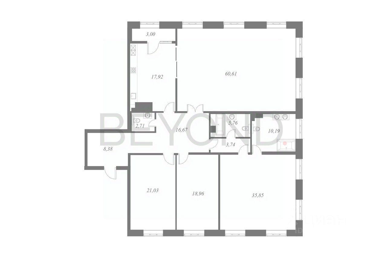 В комплексе NEVA HAUS, расположенном между реками Малая Невка и Ждановка, предлагается к продаже квартира площадью 205,6 кв. м с планировкой, включающей пять комнат. Квартира занимает первый этаж и свободна от несущих стен, что позволяет гибко организовать пространство и реализовать индивидуальные решения.Из окон открываются виды на акваторию Малой Невки и зелёные зоны Крестовского острова, с противоположной стороны — на благоустроенный палисадник с детскими площадками. Одна из комнат может быть объединена с кухонной зоной, формируя кухню-гостиную площадью 64,02 кв. м. Планировка предусматривает четыре санузла и отдельную гардеробную.Квартира расположена в малоэтажном корпусе, который оснащён двумя парадными входами, при этом на этаже располагаются всего две квартиры, что редкость для этого проекта. Комплекс характеризуется высоким уровнем инфраструктуры: прогулочная набережная, благоустроенные зоны озеленения и современные детские площадки. Техническое оснащение соответствует новейшим стандартам: бесшумные лифты Otis, система предварительной очистки воды и регуляторы напора, круглосуточная охрана и видеонаблюдение. Для удобства гостей предусмотрены гостевые парковочные места на внутренней галерее комплекса.NEVA HAUS выгодно расположен в тихой зоне, вдали от Петровского проспекта, с панорамными видами на Малую Невку и городские архитектурные достопримечательности. Просторные приватные зеленые зоны комплекса обеспечат приятное уединение. Территория комплекса благоустроена зелёными насаждениями, современными детскими и спортивными площадками, а также яхт-клубом, что создает особенную островную среду для жизни. Близость парков Крестовского острова и сформировавшаяся социальная инфраструктура обеспечивают высокое качество жизни.Инфраструктура Петровского острова включает современные кафе, рестораны, салоны, магазины и пункты доставки, и до сих пор постоянно расширяется. Вблизи находится филиал Государственной школы 99 с бассейнами и открытыми спортивными площадками.Удобный доступ к станции метро ''Крестовский остров'' и ''Спортивная'', а также выезд на ЗСД через мост Бетанкура обеспечивают эффективную транспортную логистику. NEVA HAUS представляет собой оптимальное сочетание городской инфраструктуры и природного окружения, предлагая новый стиль жизни в одном из наиболее привлекательных районов Санкт-Петербурга.