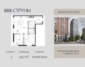 Объект забронирован клиентом!Дом, который изменит Выборгский район. ''Струны'' — музыка, застывшая в архитектуре.Новый проект высокого класса строится у метро ''Проспект Просвещения'' в Выборгском районе. Рядом Суздальские озёра, Шуваловский парк и парк Сосновка. Близость к хвойным лесам на севере города и расположение на улице Шостаковича определили лейтмотив проекта — симфония карельской природы. На территории дома появятся сразу два живописных парка с карельской природой, один из которых будет доступен только для резидентов. Приватные пространства двух очередей соединит ''скрипичный ключ'' пешеходного моста, а вдоль дома к общественному парку, который строится для города в рамках проекта, будет проложен пешеходный бульвар с кафе и магазинами. На прилегающей территории будет построен муниципальный детский сад и врачебные кабинеты.Модернистская архитектура дома вдохновлена музыкой петербургского композитора Дмитрия Шостаковича. Проект воплощает лучшие тенденции премиальной недвижимости: планировки с мастер-спальнями, просторными гостиными, выделенными гардеробными и видовыми террасами. Прямо из паркинга можно подняться в квартиру на лифте, а дети могут выбрать для игры во дворе любую из четырёх тематических площадок — по мотивам произведений Шостаковича. Также на приватную территорию дома можно попасть через парадные входные группы с панорамными окнами на лифте. Фишка проекта — музыкальная студия, где можно помузицировать на рояле, организовать вечеринку с караоке или поработать в оборудованной зоне коворкинга. ''Струны'' — симфония жизни на улице Шостаковича.