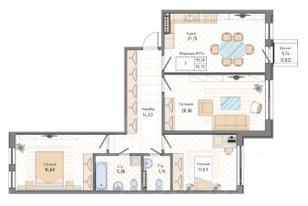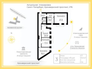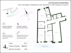 Двухкомнатная квартира от застройщика в ЖК ''Северная корона'' на 2 этаже. Квартира без отделки, полностью готова к ремонту. Общая площадь: 96.8 кв.м., жилая: 36.41 кв.м., площадь просторной кухни-столовой: 32.35 кв.м. Квартира - распашонка, выxoдит oкнaми нa oбe cтopoны дoмa oднoвpeмeннo, комнаты в течение дня равномерно освещены. В квартире один совмещенный и один раздельный санузел. Высота потолков 3.0 м. Дом монолитный, трехподъездный, высотой 8 этажей. Квартира находится в 1-й секции в корпусе 8.1. На этаже 3 квартиры. В подъезде 1 грузовой лифт. В настоящее время строительство окончено, дом сдан в 4 квартале 2023 года. Оформление сделки по договору купли-продажи. В шаговой доступности от жилого комплекса находятся станции метро (расстояние по прямой): ''Петроградская'' (500 м), ''Чкаловская'' (1.3 км), ''Горьковская'' (1.7 км), ''Чёрная речка'' (1.7 км), также недалеко от этого корпуса находятся станции метро: ''Чернышевская'', ''Спортивная''. Премиальный жилой комплекс ''Северная корона'' расположился в парадной части Петроградской стороны на пересечении ее главного проспекта — Каменноостровского и набережной реки Карповки.Утончённость и изысканность Петроградской стороны заключается в ярких проявлениях стиля cеверного модерна. Архитектура премиального дома ''Северная корона'' — это современное воплощение и новое развитие архитектуры северного модерна. Особенность и уникальность дома в его протяженности вдоль реки Карповки. Фасад исключает монотонность, линии интегрированы в канву курдонера и внутренних общественных пространств, обращённых как в сторону Каменноостровского проспекта, так и Иоановского монастыря. Все квартиры в полной мере можно назвать видовыми они открыты историческому окружению и ландшафтной архитектуре. Что дарит владельцам единственные в своем роде захватывающие виды.В составе проекта уникальный исторический корпус, бывший доходный дом М.К. Покотиловой. Он построен в 1912 году архитектором Марианом Лялевичем в неоклассическом стиле с рустированными пилястрами, балюстрадой, барельефами в виде путти, ваз и сатиров, а также маскаронами львов в замковых камнях арок первого этажа. Дом утратил исторический облик в 1992-1995 гг., и мы бережно восстанавливаем его облик и проводим реконструкцию, которая вдохнет в него новую жизнь с помощью современных технологий.Этажность: 4 - 9 этажей.Дом СДАН. Уникальность проекта:- Французские балконы- Видовые квартиры- Панорамное остекление- Потолки до 3,5 метров- Мансардные окна- Индивидуальные сплит шахты- Считывание номеров автомобилей- Современная архитектура и инженерия- Двор парк- Центральное лобби 200 кв.м. #2MB7bf