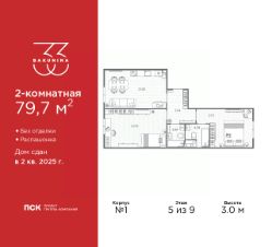 Объект забронирован клиентом!Продается 2-комн. квартира от застройщика в ЖК ''BAKUNINA 33'' на 5 этаже. Квартира без отделки, полностью готова к чистовой отделке и дальнейшему ремонту. Общая площадь: 79.7 кв.м., жилая: 42.89 кв.м., площадь просторной кухни-столовой: 21.26 кв.м. Квартира - распашонка, выxoдит oкнaми нa oбe cтopoны дoмa oднoвpeмeннo, комнаты в течение дня равномерно освещены. В квартире два совмещенных санузла. Высота потолков 3.0 м. Дом монолитный, трехподъездный, высотой 9 этажей. Квартира находится во 2-й секции в корпусе 1. На этаже 5 квартир. В подъезде 1 пассажирский и 1 грузовой лифт. Начало строительства - 2 квартал 2023 года. Строительство окончено, дом сдан во 2 квартале 2025 года. Оформление сделки по договору купли-продажи. В шаговой доступности от дома расположены станции метро (расстояние по прямой): ''Площадь Александра Невского'' (700 м), ''Площадь Александра Невского 1'' (700 м), ''Площадь Александра Невского 2'' (800 м), ''Площадь Восстания'' (1.4 км), ''Новочеркасская'' (1.5 км), также недалеко от этого корпуса расположены станции метро: ''Владимирская'', ''Чернышевская'', ''Ладожская''. Клубный дом BAKUNINA 33 - новый стандарт престижной жизни в Центральном районе. В 10 минутах от Невского проспекта и в двух минутах от Синопской набережной и Невы, в благоустроенной и знакомой среде. Локация клубного дома Bakunina 33 - идеальное место для погружения в культурную и светскую жизнь Санкт-Петербурга. В 10-15 минутах на машине почти все знаковые достопримечательности города: Эрмитаж, Русский музей, Александринский и Мариинский театры, БДТ, Таврический парк Казанский собор, Спас на крови и другие величественные дворцы, соборы, музеи, ради которых в город ежегодно съезжаются тысячи гостей. Каждая линия и каждый элемент дизайна дома является частью целостной концепции. Облик здания гармоничный, классически сдержанный с выверенными пропорциями и элегантными формами. Цветовые и архитектурные решения и эркеры придают облику дома легкость, доступную лишь респектабельной классике. Фасады привлекают внимание плавными ритмичными переходами. Вертикальная разбивка колоннами визуально устремляет здание ввысь. Плоскость фасадов декорирована разными элементами из гранита. Ограждение балконов, эркеры и колонны дополнены лаконичным геометрическим орнаментом в акцентном теплом сером цвете. Первые два этажа дома облицованы натуральным гранитом тёмного оттенка. Основной объём здания - выполнен штукатурным фасадом с окраской светлыми тонами из цветовой палитры '' Традиционные цвета Санкт-Петербурга''. Верхний этаж выполнен в стиле мансарды с высотой потолков в квартирах 3,5 метра. Этим достигается цель гармоничного и сомасштабного существования в одном фронте с существующими зданиями.За венчающим карнизом располагаются балконы девятого этажа. Ограждения балконов дополнены геометрическими узорами. Закрытый внутренний двор со сквером и детской площадкой. Острова зелени с водной чашей в центре создают ощущение гармонии и умиротворения. Современная уличная мебель и