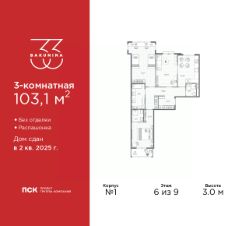 Объект забронирован клиентом!Просторная 3-комн. квартира в ЖК ''BAKUNINA 33'' на 6 этаже. Квартира без отделки, после оформления собственности можно делать ремонт. Общая площадь: 103.1 кв.м., жилая: 56.25 кв.м., площадь просторной кухни-столовой: 14.4 кв.м. Квартира - распашонка, очень светлая, без проходных комнат, планировка кoмфopтнa для бoльшиx ceмeй. В квартире один балкон, три совмещенных санузла. Высота потолков 3.0 м. Дом монолитный, трехподъездный, высотой 9 этажей. Квартира находится во 2-й секции в корпусе 1. На этаже 5 квартир. В подъезде 1 пассажирский и 1 грузовой лифт. Начало строительства - 2 квартал 2023 года. На сегодняшний день строительство окончено, дом сдан во 2 квартале 2025 года. Оформление сделки по договору купли-продажи. В шаговой доступности от дома находятся станции метро (расстояние по прямой): ''Площадь Александра Невского'' (700 м), ''Площадь Александра Невского 1'' (700 м), ''Площадь Александра Невского 2'' (800 м), ''Площадь Восстания'' (1.4 км), ''Новочеркасская'' (1.5 км), также недалеко от этого корпуса расположены станции метро: ''Владимирская'', ''Чернышевская'', ''Ладожская''. Клубный дом BAKUNINA 33 - новый стандарт престижной жизни в Центральном районе. В 10 минутах от Невского проспекта и в двух минутах от Синопской набережной и Невы, в благоустроенной и знакомой среде. Локация клубного дома Bakunina 33 - идеальное место для погружения в культурную и светскую жизнь Санкт-Петербурга. В 10-15 минутах на машине почти все знаковые достопримечательности города: Эрмитаж, Русский музей, Александринский и Мариинский театры, БДТ, Таврический парк Казанский собор, Спас на крови и другие величественные дворцы, соборы, музеи, ради которых в город ежегодно съезжаются тысячи гостей. Каждая линия и каждый элемент дизайна дома является частью целостной концепции. Облик здания гармоничный, классически сдержанный с выверенными пропорциями и элегантными формами. Цветовые и архитектурные решения и эркеры придают облику дома легкость, доступную лишь респектабельной классике. Фасады привлекают внимание плавными ритмичными переходами. Вертикальная разбивка колоннами визуально устремляет здание ввысь. Плоскость фасадов декорирована разными элементами из гранита. Ограждение балконов, эркеры и колонны дополнены лаконичным геометрическим орнаментом в акцентном теплом сером цвете. Первые два этажа дома облицованы натуральным гранитом тёмного оттенка. Основной объём здания - выполнен штукатурным фасадом с окраской светлыми тонами из цветовой палитры '' Традиционные цвета Санкт-Петербурга''. Верхний этаж выполнен в стиле мансарды с высотой потолков в квартирах 3,5 метра. Этим достигается цель гармоничного и сомасштабного существования в одном фронте с существующими зданиями.За венчающим карнизом располагаются балконы девятого этажа. Ограждения балконов дополнены геометрическими узорами. Закрытый внутренний двор со сквером и детской площадкой. Острова зелени с водной чашей в центре создают ощущение гармонии и умиротворения. Современная уличная мебель и освещ