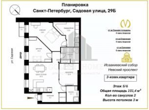 Арт. 123972155 Рядом с Исаакиевским собором, набережной Невы!Невский проспект, Дворцовая площадь!Уважаемый Покупатель,предлагаем Вашему вниманию 5 комн. квартиру площадью 113,4 кв.м., которая находится в доме 1904 г.п. (Дом Почтового Ведомства). Вокруг дома царит атмосфера культурной жизни и деловой активности. Рядом находятся музеи, дворцы, театры, рестораны и уютные кафе. Здесь всегда кипит жизнь, но в то же время ощущается особая петербургская тишина и спокойствие.Жизнь в этом доме это возможность прикоснуться к истории, ощутить себя в центре культурной жизни города. Это выбор для тех, кто ценит неповторимую атмосферу старого Петербурга.В доме был осуществлен капитальный ремонт крыши. Вход в парадную с улицы. Парадная чистая, сделан ремонт. В доме НЕТ ЛИФТА.Перспективная двусторонняя планировка планировка, большие комнаты. За счет того, что квартира находится на высоком этаже, в ней очень много света!Отличная транспортная доступность. До станции метро ''Адмиралтейская'' можно дойти неспешным шагом за 15 минут. Несомненно, локация удобна тем, что добраться в любую точку города можно как на автомобиле, так и на общественном транспорте.Полное юридическое сопровождение сделки!Приглашаем Вас на просмотр! Предлагаем ПРЕМИАЛЬНОЕ обслуживание для требовательных клиентов.Оперативно организуем просмотр, предоставим полную информацию по объекту.20 лет работы с требовательными клиентами подготовили нас к решению ВАШИХ сложных задач.Будем рады знакомству! Ул. Рубинштейна, д.8.