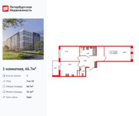 Продается просторная 2-комнатная квартира от застройщика в жилом комплексе ''Svetlana Park'' в современном Выборгском районе.До метро можно добраться пешком всего за 15 минут.Удобная, классическая планировка, кухня 12.2 м², просторная прихожая 13.8 м². Общая площадь квартиры - 66.7 м², жилая 31.1 м², высота потолка 3 м.Квартира продается c черновой отделкой.Что особенного в ЖК ''Svetlana Park''?• 15 мин пешком до метро Удельная и 500 м до Парка Сосновка• Клинкерный кирпич в отделке фасадов, с архитектурной вечерней подсветкой• Панорамные алюминиевые окна ''Reynaers''. Безрамное остекление балконов и лоджий• Благоустроенный променад с арт-скверами и всесезонный дендропарк во дворе• Дом бизнес класса: Потолки 3 метра, дополнительная шумоизоляция в полу, лифты в паркинг