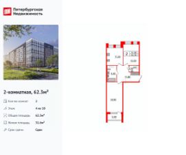 Продается просторная 2-комнатная квартира от застройщика в жилом комплексе ''Svetlana Park'' в современном Выборгском районе.До метро можно добраться пешком всего за 15 минут.Удобная, классическая планировка, кухня 11.1 м², просторная прихожая 11.6 м². Общая площадь квартиры - 62.1 м², жилая 31.6 м², высота потолка 3 м.Квартира продается c черновой отделкой.Что особенного в ЖК ''Svetlana Park''?• 15 мин пешком до метро Удельная и 500 м до Парка Сосновка• Клинкерный кирпич в отделке фасадов, с архитектурной вечерней подсветкой• Панорамные алюминиевые окна ''Reynaers''. Безрамное остекление балконов и лоджий• Благоустроенный променад с арт-скверами и всесезонный дендропарк во дворе• Дом бизнес класса: Потолки 3 метра, дополнительная шумоизоляция в полу, лифты в паркинг