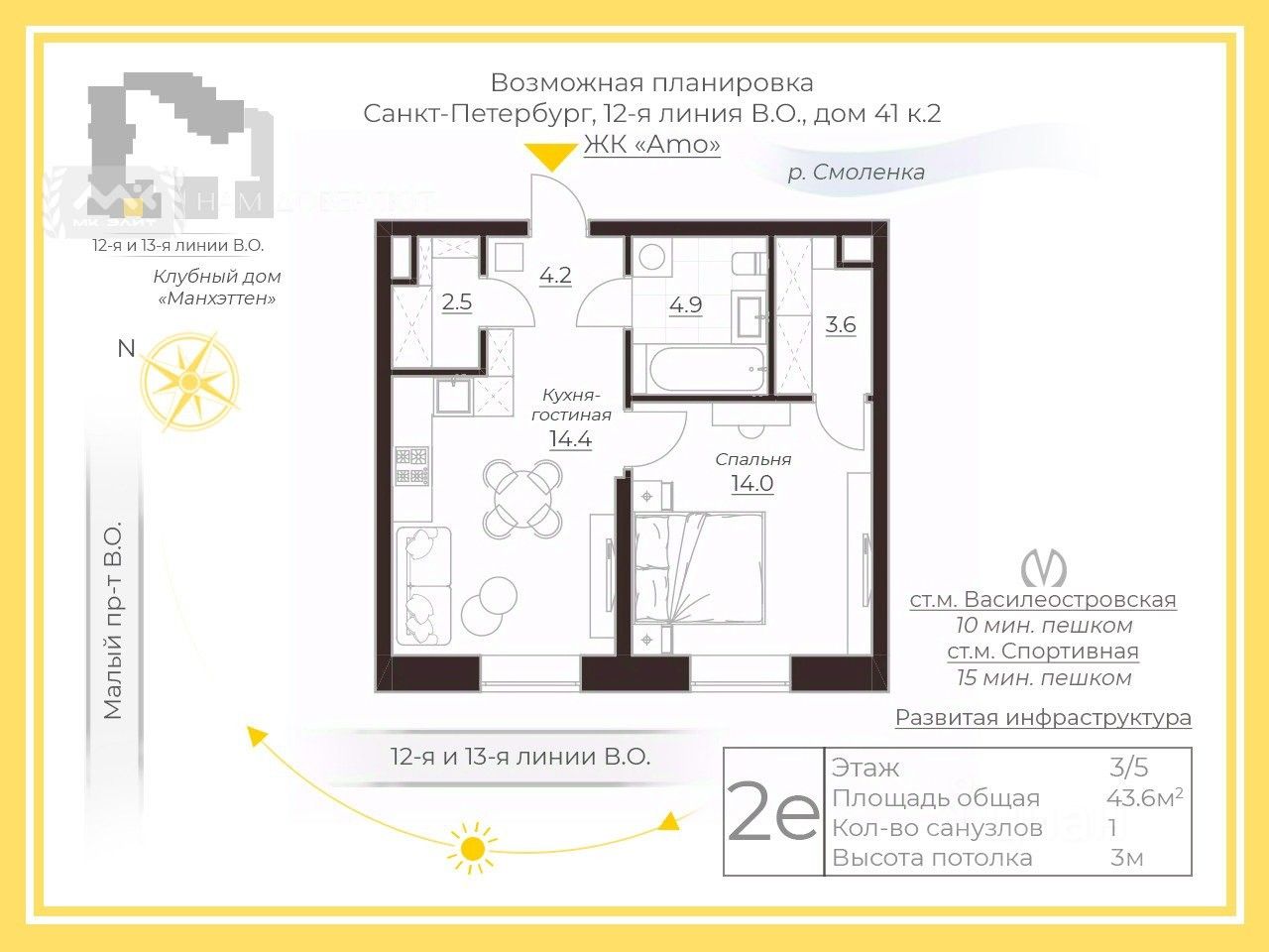 Клубный проект бизнес-класса в Василеостровском районе Санкт-Петербурга. Жилой комплекс на 360 квартир с высоким уровнем безопасности и стильными дизайнерскими решениями. Дом построен по надёжной монолитной технологии. Отличное решение для комфортной жизни в историческом центре города. Говоря о данном доме можно выделить следующие ПРЕИМУЩЕСТВА: 1. Жителям комплекса доступны услуги круглосуточной зоны ресепшен с камерой хранения доставки и зоной ожидания. В теплое время года во внутреннем дворе работает кинотеатр под открытым небом. 2. Для автовладельцев предусмотрен подземный паркинг на 116 машиномест. Территория проекта закрыта, ведётся круглосуточное видеонаблюдение, вход на территорию осуществляется через отпечаток пальца, Face-ID или пароль. 3. На территории комплекса высажены декоративные травы и злаки, красные клёны, рябина, сирень. В центре двора расположена ель, которая украшается к праздникам. 4. В составе комплекса предусмотрена начальная школа на 200 мест, расположенная в реконструированном историческом особняке Шредера. 5. Ближайшие станции метро Василеостровская и Спортивная находятся менее чем в 10 минутах ходьбы. В пешей доступности находится вся необходимая инфраструктура: школы, детские сады, университеты, спорткомплекс, магазины, кафе и рестораны. Квартира находится на 3/9 этаже. Общая площадь квартиры 70.76 м2. Светлая спальня 17.76 м2. Детская комната 15.26 м2. Уютная кухня 12.75 м2. Раздельный санузел 4.15 + 2.49 м2. Лоджия 2.61 м2. Откройте для себя мир новой перспективы!