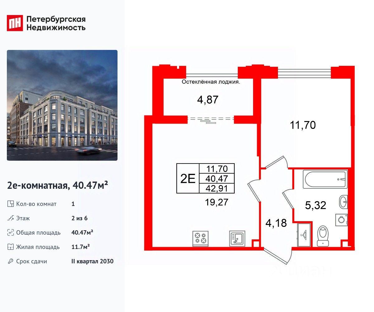 40 м² · Этаж 2 из 6
