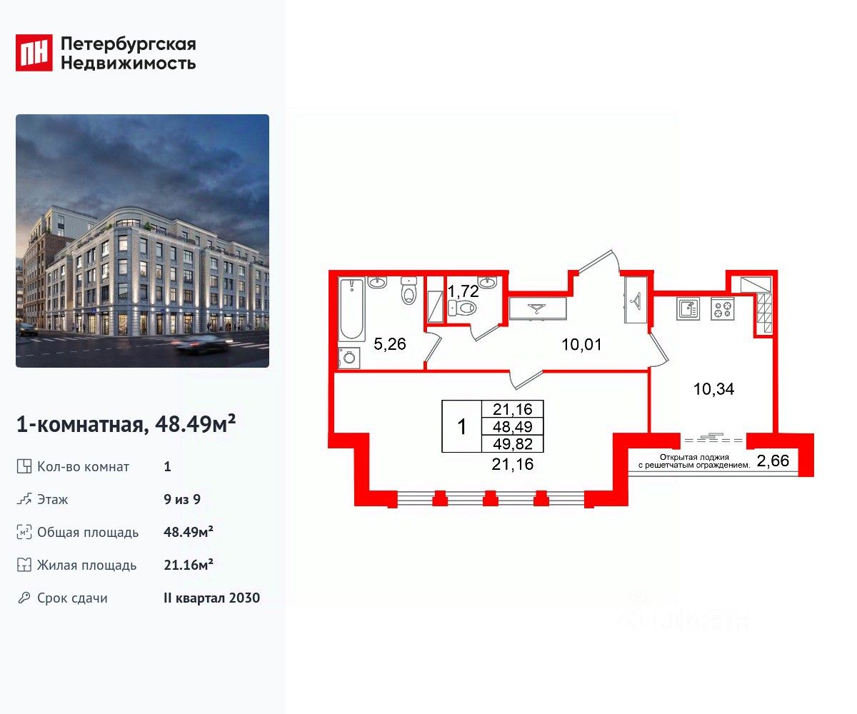 48 м² · Этаж 9 из 9