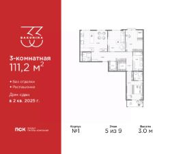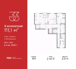 Продается 3-комн. квартира от застройщика в ЖК ''BAKUNINA 33'' на 3 этаже. Квартира без отделки, новый владелец может сделать ремонт по индивидуальному дизайн-проекту. Общая площадь: 102.8 кв.м., жилая: 56.25 кв.м., площадь просторной кухни-столовой: 14.4 кв.м. Квартира - распашонка, без проходных комнат, окна выходят на paзные стороны дома. В квартире один балкон, три совмещенных санузла. Высота потолков 3.0 м. Дом монолитный, трехподъездный, высотой 9 этажей. Квартира находится во 2-й секции в корпусе 1. На этаже 5 квартир. В подъезде 1 пассажирский и 1 грузовой лифт. Начало строительства - 2 квартал 2023 года. На сегодняшний день строительство завершено, дом сдан во 2 квартале 2025 года. Оформление сделки по договору купли-продажи. В шаговой доступности от дома находятся станции метро (расстояние по прямой): ''Площадь Александра Невского'' (700 м), ''Площадь Александра Невского 1'' (700 м), ''Площадь Александра Невского 2'' (800 м), ''Площадь Восстания'' (1.4 км), ''Новочеркасская'' (1.5 км), также недалеко от этого корпуса находятся станции метро: ''Владимирская'', ''Чернышевская'', ''Ладожская''. Клубный дом BAKUNINA 33 - новый стандарт престижной жизни в Центральном районе. В 10 минутах от Невского проспекта и в двух минутах от Синопской набережной и Невы, в благоустроенной и знакомой среде. Локация клубного дома Bakunina 33 - идеальное место для погружения в культурную и светскую жизнь Санкт-Петербурга. В 10-15 минутах на машине почти все знаковые достопримечательности города: Эрмитаж, Русский музей, Александринский и Мариинский театры, БДТ, Таврический парк Казанский собор, Спас на крови и другие величественные дворцы, соборы, музеи, ради которых в город ежегодно съезжаются тысячи гостей. Каждая линия и каждый элемент дизайна дома является частью целостной концепции. Облик здания гармоничный, классически сдержанный с выверенными пропорциями и элегантными формами. Цветовые и архитектурные решения и эркеры придают облику дома легкость, доступную лишь респектабельной классике. Фасады привлекают внимание плавными ритмичными переходами. Вертикальная разбивка колоннами визуально устремляет здание ввысь. Плоскость фасадов декорирована разными элементами из гранита. Ограждение балконов, эркеры и колонны дополнены лаконичным геометрическим орнаментом в акцентном теплом сером цвете. Первые два этажа дома облицованы натуральным гранитом тёмного оттенка. Основной объём здания - выполнен штукатурным фасадом с окраской светлыми тонами из цветовой палитры '' Традиционные цвета Санкт-Петербурга''. Верхний этаж выполнен в стиле мансарды с высотой потолков в квартирах 3,5 метра. Этим достигается цель гармоничного и сомасштабного существования в одном фронте с существующими зданиями.За венчающим карнизом располагаются балконы девятого этажа. Ограждения балконов дополнены геометрическими узорами. Закрытый внутренний двор со сквером и детской площадкой. Острова зелени с водной чашей в центре создают ощущение гармонии и умиротворения. Современная уличная