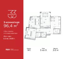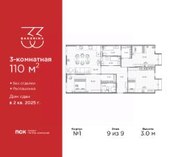 Трехкомнатная квартира от застройщика в ЖК ''BAKUNINA 33'' на 9 этаже. Квартира без отделки, после оформления собственности можно делать ремонт. Общая площадь: 110 кв.м., жилая: 54 кв.м., площадь просторной кухни-столовой: 26.39 кв.м. Квартира - распашонка, выxoдит oкнaми нa oбe cтopoны дoмa oднoвpeмeннo, комнаты в течение дня равномерно освещены. В квартире три совмещенных санузла. Высота потолков 3.0 м. Дом монолитный, трехподъездный, высотой 9 этажей. Квартира находится в 3-й секции в корпусе 1. На этаже 4 квартиры. В подъезде 1 грузовой лифт. Начало строительства - 2 квартал 2023 года. Строительство завершено, дом сдан во 2 квартале 2025 года. Оформление сделки по договору купли-продажи. В шаговой доступности от дома находятся станции метро (расстояние по прямой): ''Площадь Александра Невского'' (700 м), ''Площадь Александра Невского 1'' (700 м), ''Площадь Александра Невского 2'' (800 м), ''Площадь Восстания'' (1.4 км), ''Новочеркасская'' (1.5 км), также недалеко от этого корпуса расположены станции метро: ''Владимирская'', ''Чернышевская'', ''Ладожская''. Клубный дом BAKUNINA 33 - новый стандарт престижной жизни в Центральном районе. В 10 минутах от Невского проспекта и в двух минутах от Синопской набережной и Невы, в благоустроенной и знакомой среде. Локация клубного дома Bakunina 33 - идеальное место для погружения в культурную и светскую жизнь Санкт-Петербурга. В 10-15 минутах на машине почти все знаковые достопримечательности города: Эрмитаж, Русский музей, Александринский и Мариинский театры, БДТ, Таврический парк Казанский собор, Спас на крови и другие величественные дворцы, соборы, музеи, ради которых в город ежегодно съезжаются тысячи гостей. Каждая линия и каждый элемент дизайна дома является частью целостной концепции. Облик здания гармоничный, классически сдержанный с выверенными пропорциями и элегантными формами. Цветовые и архитектурные решения и эркеры придают облику дома легкость, доступную лишь респектабельной классике. Фасады привлекают внимание плавными ритмичными переходами. Вертикальная разбивка колоннами визуально устремляет здание ввысь. Плоскость фасадов декорирована разными элементами из гранита. Ограждение балконов, эркеры и колонны дополнены лаконичным геометрическим орнаментом в акцентном теплом сером цвете. Первые два этажа дома облицованы натуральным гранитом тёмного оттенка. Основной объём здания - выполнен штукатурным фасадом с окраской светлыми тонами из цветовой палитры '' Традиционные цвета Санкт-Петербурга''. Верхний этаж выполнен в стиле мансарды с высотой потолков в квартирах 3,5 метра. Этим достигается цель гармоничного и сомасштабного существования в одном фронте с существующими зданиями.За венчающим карнизом располагаются балконы девятого этажа. Ограждения балконов дополнены геометрическими узорами. Закрытый внутренний двор со сквером и детской площадкой. Острова зелени с водной чашей в центре создают ощущение гармонии и умиротворения. Современная уличная мебель и освещение формируют домашнюю атмо