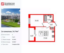 Продается просторная 1-комнатная квартира от застройщика в жилом комплексе ''Парадный ансамбль'' в престижном Московском районе.До метро можно добраться на транспорте всего за 20 минут.Удобная, классическая, функциональная европланировка, большая кухня-гостиная 17.88 м², просторная прихожая 4.51 м². Общая площадь квартиры - 36.53 м², жилая 10.66 м², высота потолка 2.77 м.Квартира продается с отделкой ''NORD LINE SILVER''.Что особенного в ЖК ''Парадный ансамбль''?• Инновационный Лицей Setl с оригинальной архитектурной концепцией и уникальной образовательной средой• Масштабное малоэтажное строительство в престижном Московском районе• Рекреационные зоны: парадный парк в центре квартала, ручей с собственной набережной, центральная площадь, ресторанный комплекс и пешеходный бульвар• Фасады из керамогранита и кирпича с яркими и акцентными входными группами• Две самые большие площадки Setl Kids и Setl Sport• Уникальные квартиры.High Flat на последних этажах, палисадники у квартир на первом этаже, семейные секции, квартиры с саунами и окном в ванной