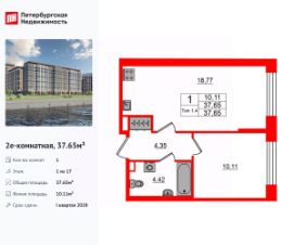 Продается просторная 1-комнатная квартира от застройщика в жилом комплексе ''Астра Континенталь'' в активно развивающимся Невском районе.До метро можно добраться пешком всего за 5 минут.Удобная, классическая, функциональная европланировка, большая кухня-гостиная 17.58 м², просторная прихожая 6.13 м². Общая площадь квартиры - 37.44 м², жилая 10 м², высота потолка 2.77 м.Квартира продается с отделкой ''NORD LINE WHITE ВК NEW''.Что особенного в ЖК ''Астра Континенталь''?• Уникальная локация 400 метров до метро, 300 метров до благоустроенной набережной• Самодостаточный квартал со всей инфраструктурой в 3-х км от центра• Впечатляющий объем благоустройства: 30 000 кв. метров рекреационных зон с променадом и гейзерными фонтанами• Масштабный парк ''Город Спорта''