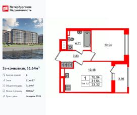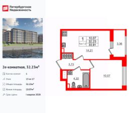 Продается уютная 1-комнатная квартира от застройщика в жилом комплексе ''Setl Ривьера'' в активно развивающимся Невском районе.До метро можно добраться на транспорте всего за 10 минут.Удобная, классическая, функциональная европланировка, большая кухня-гостиная 15.02 м², вместительная прихожая 3.61 м². Общая площадь квартиры - 32.48 м², жилая 10.36 м², высота потолка 2.77 м.Квартира продается с отделкой ''NORD LINE SILVER ВК NEW''.Что особенного в ЖК ''Setl Ривьера''?• Первая береговая линия Невы. 5 км до центра Петербурга• ''Активити парк'' - пространство для занятий спортом и отдыха. ''Ривьера парк'' с променадом и панорамной ротондой• Масштабные дворы 10 000 кв.м. с авторским ландшафтным дизайном• Двухуровневые единые входные группы• Видовые квартиры с террасами, каминами и саунами