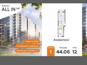 Купи квартиру в ''ЖК All in 3.0''ОтделкаВ квартире выполнена предчистовая отделка WhiteBox+Возможен дозаказ отделки в любом из 3 цветов: SAND, TERRA, GRAPHITEОтделка входит в стоимость квартиры в ДДУЖК Аквилон All in 3.0 в Пушкинском районе Петербурга. Это 12-этажный дом на Школьной улице на 812 квартир с отапливаемым подземным паркингом. -Малошумные лифты-Сквозные парадные-Светопрозрачные входные группы-Увеличенная высота первого этажа-Безбарьерная среда-Подземный паркингКак и все другие проекты, ЖК Аквилон All in 3.0 мы реализуем на базе концепции Э4. Она подразумевает внедрение технологических разработок по 4 направлениям: энергоэффективности, эргономики, экологичности, экономии средств и времени жителей. Стандарты Группы Аквилон для вашей комфортной жизниThermo-S экономия на коммунальных платежах за счет дополнительно утепленных стен, кровли и цоколя. Энергоэффективные окна с селективным покрытием и аргоновым заполнением Soundstop - дополнительная шумоизоляция внутренних перегородок и межэтажных перекрытий, шумозащитные окна, малошумные лифтыLight-in - в квартирах устанавливаются широкоформатные окна, увеличены на 30%. Высота подоконников на уровне 60 см от пола. Vent-in - в каждой комнате есть клапаны индивидуальной вентиляции, которые обеспечивают приток свежего воздуха с улицы.inHOME 3.0 умный дом в каждой квартиреИнтеллектуальная цифровая система, которая позволит дистанционно решать бытовые вопросы, управлять квартирой и экономить на оплате коммунальных услуг.В состав inHOME входят: IP-домофон, Face key, ''умные'' счетчики, датчики протечки, дистанционное отключение розеток, и т.д.Жилой комплекс расположится в уже развитом районе с хорошей транспортной и социальной инфраструктурой: рядом — выезд на КАД, 15 минут до метро ''Купчино'' и аэропорта Пулково. #z5AeZd