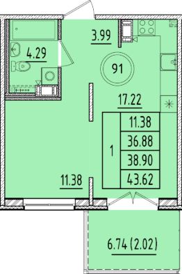38 м2