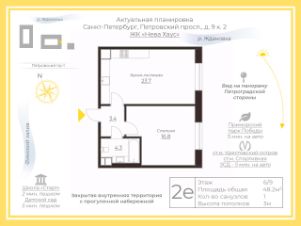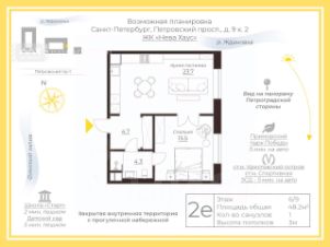 Квартира с одной спальней в премиальном жилом комплексе Neva Haus располагается в одном из лучших мест Санкт-Петербурга - Петровском острове, в окружении зелени парков и свежести воды.Площадь квартиры 48,2 кв. м. Планировкой предусмотрены большая кухня-столовая площадью 24 кв. м и просторная спальня 17 кв. м, выходящая окнами на небесную линию Петроградки, на эксклюзивный ландшафтный двор. Все окна квартиры обращены на восток, благодаря чему в квартире будет солнечно в первой половине дня.На лестничной площадке всего 4 квартиры. Комплекс Neva Haus полностью соответствует современным требованиям комфорта для проживания. В проекте реализуется концепция закрытой внутренней территории с ландшафтным дизайном и прогулочной набережной вдоль Малой Невки.Петровский остров одно из уникальных мест Петербурга, тихое, с благоприятной экологией. Располагается в Петроградском районе, между Малой Невкой, Малой Невой, Ждановкой и водами Финского залива. Остров просто утопает в зелени.В непосредственной близости находятся ухоженные, благоустроенный парк им. Савиной, Петровский парк, основанный при Екатерине Второй. В пешей доступности расположился Крестовский остров с такими доминантами, как Зенит Арена и Сибур Арена, Приморский парк Победы. Транспортная логистика позволяет беспрепятственно добраться в исторический центр города или выехать за город в направлении Курортного района. Мост Бетанкура соединяет район с Васильевским островом и ЗСД и позволяет в любое время суток добраться до аэропорта Пулково за 20-25 минут.Петровский остров - новая престижная локация для жизни в Петербурге!