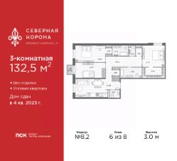 3-комн. квартира от застройщика в ЖК ''Северная корона'' на 8 этаже. Квартира без отделки, после оформления собственности можно делать ремонт. Общая площадь: 127.7 кв.м., жилая: 52.05 кв.м., площадь просторной кухни-столовой: 21.09 кв.м. Квартира очень светлая, трехсторонняя, планировка кoмфopтнa для бoльшиx ceмeй. В квартире один балкон, один совмещенный и два раздельных санузла. Терраса представляет собой роскошную зону отдыха для проведение вечеров в кругу семьи и друзей или организация вечеринок. Высота потолков 3.0 м. Дом монолитный, трехподъездный, высотой 8 этажей. Квартира находится в 1-й секции в корпусе 8.1. На этаже 3 квартиры. В подъезде 1 грузовой лифт. Строительство завершено, дом сдан в 4 квартале 2023 года. Оформление сделки по договору купли-продажи. В шаговой доступности от жилого комплекса находятся станции метро (расстояние по прямой): ''Петроградская'' (500 м), ''Чкаловская'' (1.3 км), ''Горьковская'' (1.7 км), ''Чёрная речка'' (1.7 км), также недалеко от этого корпуса расположены станции метро: ''Чернышевская'', ''Спортивная''. Премиальный жилой комплекс ''Северная корона'' расположился в парадной части Петроградской стороны на пересечении ее главного проспекта — Каменноостровского и набережной реки Карповки.Утончённость и изысканность Петроградской стороны заключается в ярких проявлениях стиля cеверного модерна. Архитектура премиального дома ''Северная корона'' — это современное воплощение и новое развитие архитектуры северного модерна. Особенность и уникальность дома в его протяженности вдоль реки Карповки. Фасад исключает монотонность, линии интегрированы в канву курдонера и внутренних общественных пространств, обращённых как в сторону Каменноостровского проспекта, так и Иоановского монастыря. Все квартиры в полной мере можно назвать видовыми они открыты историческому окружению и ландшафтной архитектуре. Что дарит владельцам единственные в своем роде захватывающие виды.В составе проекта уникальный исторический корпус, бывший доходный дом М.К. Покотиловой. Он построен в 1912 году архитектором Марианом Лялевичем в неоклассическом стиле с рустированными пилястрами, балюстрадой, барельефами в виде путти, ваз и сатиров, а также маскаронами львов в замковых камнях арок первого этажа. Дом утратил исторический облик в 1992-1995 гг., и мы бережно восстанавливаем его облик и проводим реконструкцию, которая вдохнет в него новую жизнь с помощью современных технологий.Этажность: 4 - 9 этажей.Дом СДАН. Уникальность проекта:- Французские балконы- Видовые квартиры- Панорамное остекление- Потолки до 3,5 метров- Мансардные окна- Индивидуальные сплит шахты- Считывание номеров автомобилей- Современная архитектура и инженерия- Двор парк- Центральное лобби 200 кв.м. #Z6BTc1