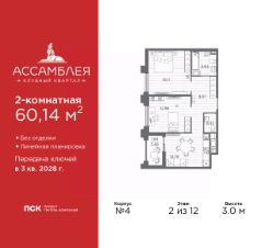 2-комн. квартира в Клубный квартал ''Ассамблея'' на 8 этаже. Квартира без отделки, новый собственник может сделать ремонт по индивидуальному дизайн-проекту. Общая площадь: 66.99 кв.м., жилая: 32.68 кв.м., площадь просторной кухни-столовой: 18.06 кв.м. Комнаты изолированные, все окна выходят на одну сторону. В квартире одна лоджия, один совмещенный и один раздельный санузел. Высота потолков 3.0 м. Дом монолитный, черырехподъездный, высотой 12 этажей. Квартира находится в 4-й секции в корпусе 5. На этаже 10 квартир. В подъезде 1 пассажирский и 1 грузовой лифт. Окончание строительства - 3 квартал 2028 года. Оформление сделки по договору долевого участия. В шаговой доступности от жилого комплекса имеются станции метро (расстояние по прямой): ''Горный институт'' (1.0 км), ''Василеостровская'' (1.4 км), ''Приморская'' (1.5 км), также недалеко от этого корпуса находятся станции метро: ''Спортивная'', ''Чкаловская''. ''Клубный квартал Ассамблея'' — проект бизнес-класса на Васильевском острове, в самом сердце исторического Петербурга. Комплекс состоит из пяти корпусов переменной этажности — от 7 до 12 этажей — с выразительной архитектурой в стиле неомодернизма: светлый клинкер, панорамное остекление, просторное лобби с потолками высотой почти 8 метров. Потолки — до 3,2 метров. Подземный паркинг на 667 машиномест. Комфорт и инфраструктура Проект ориентирован на комфортную городскую жизнь. В закрытом дворе — ландшафтное озеленение, современные детские и спортивные площадки. Внутренний клуб для резидентов включает коворкинг, переговорные, кинозал, фитнес и бьюти-зону. IP-домофония с просмотром камер видеонаблюдения, дистанционное открывание дверей и доступа на территорию и в парадную со смартфона и планшета, просмотр показаний счетчиков, приложение для жителей PSK Home. Локация Расположение на Васильевском острове — сильная сторона проекта. До четырех станций метро (''Горный институт'', ''Василеостровская'', ''Спортивная'', ''Приморская'') — 515 минут пешком. В шаговой доступности — зелёные зоны, культурные учреждения, в том числе сад ''Василеостровец'' и ДК имени Кирова. Основные магистрали Большой, Средний и Малый проспекты, Наличная и Уральская улицы. Съезд на ЗСД расположен недалеко от станции метро ''Приморская'', близ береговой линии. Благовещенский и Дворцовый мосты соединяют остров с центром города, а мосты Тучков, Биржевой и Бетанкура — с Петроградской стороной. Застройщик Группа компаний ПСК является одной из ведущих девелоперских компаний Санкт Петербурга. На протяжении 18 лет она возводит в Северной столице качественное жилье премиум, бизнес и комфорт-класса, социальные объекты школы и детские сады, апарт-отели и торговые центры. Является шестикратным обладателем золотого знака ''Надежный застройщик России''. #2mBgFm