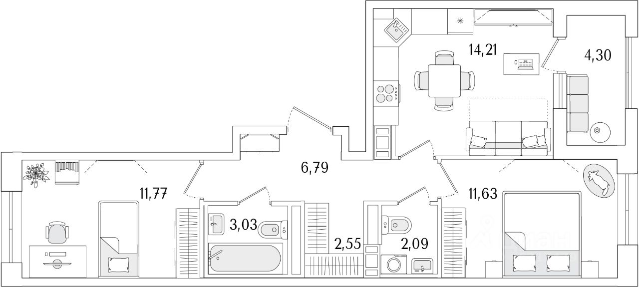 54 м² · Этаж 11 из 13