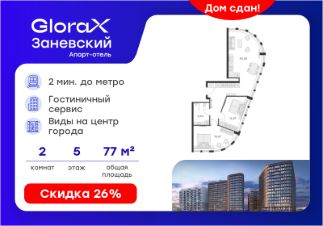 Продается 2-комн. апартамент на 7-м этаже в Апарт-отеле ''GloraX Заневский'' с сервисом 4*. Старт работы отеля - декабрь 2024 г.! Общая площадь лота составляет 43,10 кв. м, из которых 23,20 кв. м отведено под жилую. Номер апартамента - 708.Преимущества:- Апарт-отель с сервисом 4 звезды- Меблировка и техника - 2 вида доходных программ- Консьерж-сервис- Вход по ключ-карте- Прачечная для гостей на 1 этаже- Уборка номеров- Безопасная территория и изолированный внутренний двор - Pet-friendlyАпарт-отель ''GloraX Заневский'' современный отель с развитой инфраструктурой, удовлетворяющей все потребности самых взыскательных гостей. Апарт-отель ''GloraX Заневский'' располагается в одном из наиболее перспективных, районов Петербурга в 2х минутах от метро ''Ладожская'' и Ладожского вокзала, в 10 минутах от Московского вокзала и в 20 минутах от исторического центра.В апарт-отеле ''GloraX Заневский'' есть все, что необходимо для комфортной жизни, работы и отдыха. Инфраструктура, покрывающая все потребности и ожидания собственников и арендаторов. В радиусе 150 метров находятся супермаркеты с возможностью доставки продуктов прямо до дверей апартаментов.На 1000 кв. м. общественных пространств расположится уютный лобби-бар, ресторан мировой кухни на 80 человек, фитнес-зал и оборудованные коворкинги.В апартаментах ''GloraX Заневский'' выполнена современная отделка с использованием высококачественных экологичных материалов. Инновационные технологические системы, аварийные и противопожарные датчики, взаимодействие со службами быстрого реагирования гарантируют резидентам комплексную безопасность. В проекте предусмотрен подземный отапливаемый паркинг на 100 мест, куда можно спуститься на лифте прямо от дверей апартаментов.Вся информация по эксплуатации номера аккумулируется в специально разработанном приложении, не имеющем аналогов на рынке. Функциональное и удобное приложение помогает оперативно решать все возникающие вопросы в режиме реального времени. Благодаря инновационному решению по оперативным выплатам деньги от аренды поступят на ваш счет максимально быстро.Узнайте подробности в Отделе продаж.