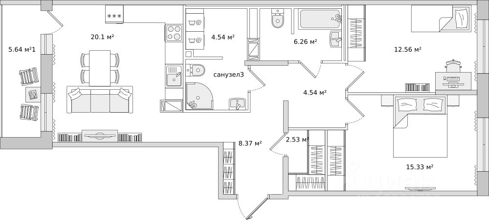 Трехкомнатные