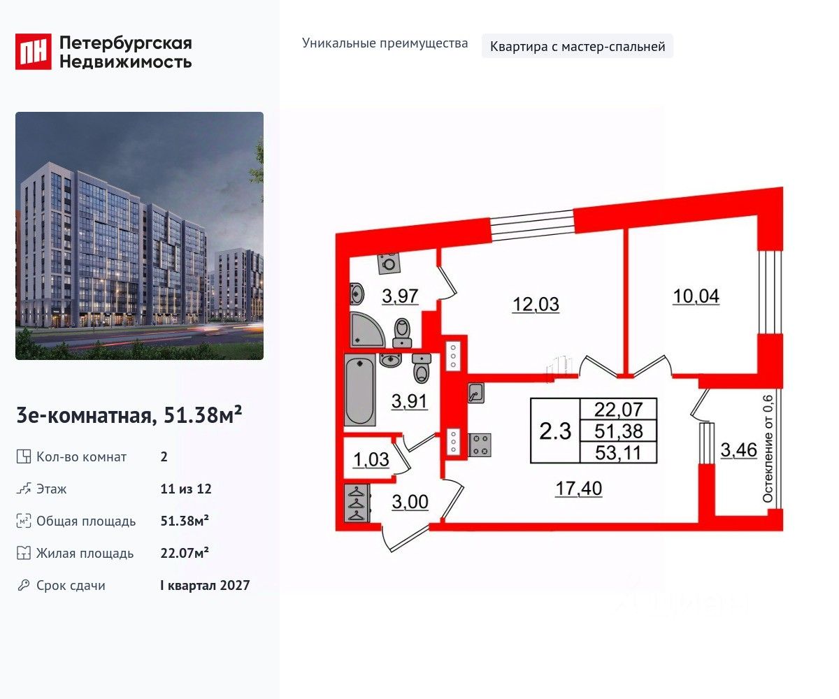 51 м² · Этаж 11 из 12