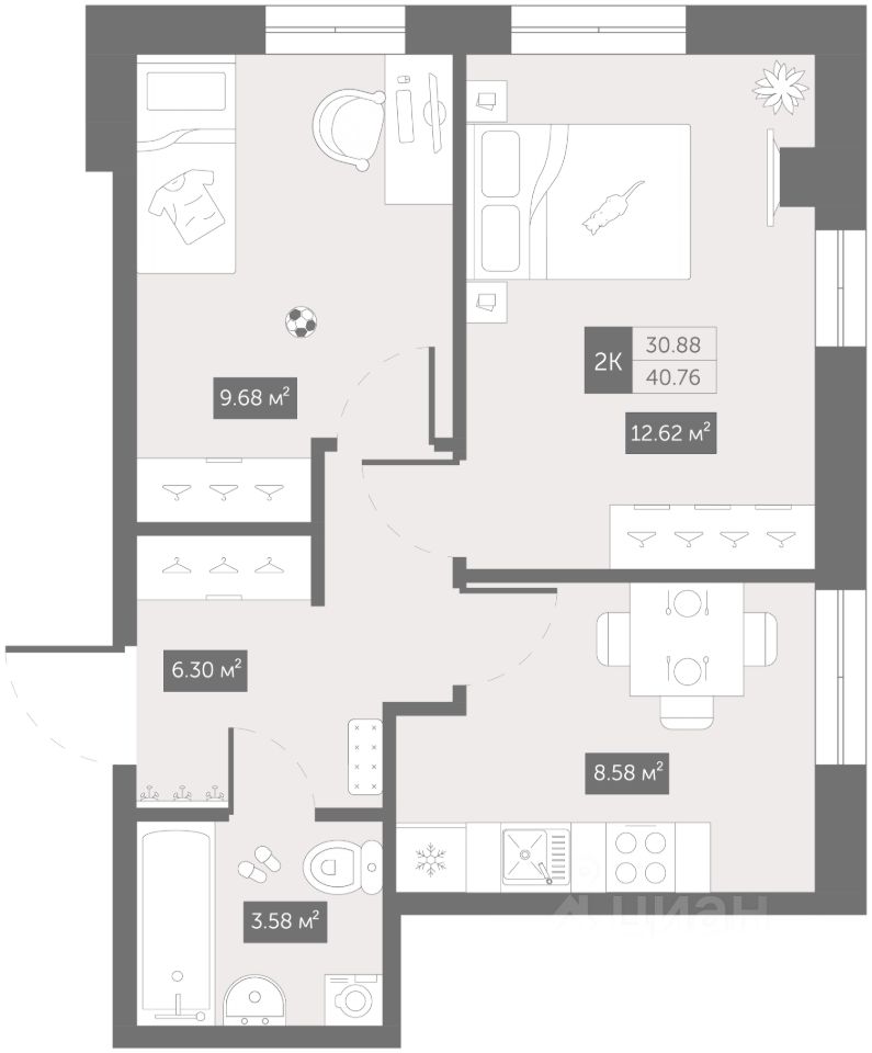 56 м² · Этаж 6 из 12