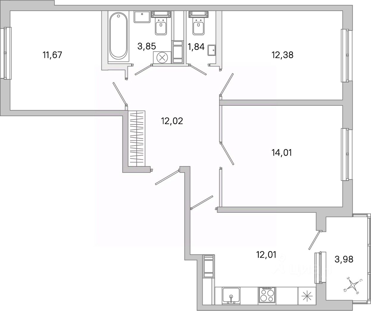 Дом сдан. Ключи сразу. Ипотека с господдержкой. Продается просторная трехкомнатная квартира: общая площадь 95.2 м2, жилая 46.2 м2, высокие потолки 2.73 м. Возможен заказ чистовой отделки. Планировка грамотно продумана для жизни большой семьи: просторные комнаты, широкий коридор, два санузла, качественная шумоизоляция. В этой квартире всем будет комфортно!В квартире есть обособленное крыло, состоящее из пятиугольной комнаты и санузла. Домочадцам, которые любят приватность, наверняка понравится это оригинальное решение. Две другие комнаты практически одинаковы по размерам.Прямоугольная кухня-гостинная площадью 21.1 м2 это самое просторное и самое светлое (с двумя окнами) помещение в квартире. Здесь комфортно не только готовить, но и устраивать семейные посиделки. Из кухни есть выход на треугольную лоджию, откуда можно обозревать аккуратный двор и парк. Двор жилого комплекса закрыт от чужаков, в ЖК работает служба охраны, ведется круглосуточное видеонаблюдение. На территории выполнено озеленение, предусмотрены игровые и спортивные площадки, зонированы места для отдыха и прогулок.ЖК ''ПРАГМА city'' выполнен по прочной и долговечной монолитной технологии, срок его службы составляет минимум 150 лет. Дом сдан и заселяется, ключи выдаются сразу после покупки. Все новоселы получат огромный бонус в виде расположенного буквально через дорогу знаменитого Шуваловского парка. Это красивое и экологически чистое место не зря считается наследием ЮНЕСКО: здесь множество природных и исторических достопримечательностей. Гулять по бывшим графским угодьям всей семьей пешком либо прихватив велосипеды или самокаты настоящее удовольствие!Транспортная доступность локации на высшем уровне. До станции метро ''Парнас'' 15 минут пешком. Рядом выезды на КАД, Выборгское ш-се и пр. Энгельса, по которым можно добраться в любые районы города, включая центр. Любителям чуть более дальних прогулок несложно будет прокатиться до курорта ''Охта-Парк'', Новоорловского заказника или Суздальских озер. А то и умчаться к живописному Карельскому перешейку, который находится в пределах часа езды!