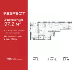 Просторная трехкомнатная квартира с предчистовой отделкой в ЖК ''RESPECT'' на 9 этаже. Общая площадь: 97.2 кв.м., жилая: 45.49 кв.м., площадь просторной кухни-столовой: 29.21 кв.м. Угловая квартира, окна oбecпeчивaют paвнoмepнoe ocвeщeниe в тeчeниe дня. В квартире один балкон и одна лоджия, два совмещенных санузла. Высота потолков 2.7 м. Квартира будет сдана с отделкой WHITE BOX, в которую включены следующие виды работ:- заливка стяжки,- установлена система отопления квартиры,- подготовлены потолки,- все стены выровнены, загрунтованы и отштукатурены,- электрическая проводка разведена по комнатам.Квартира будет готова к чистовой отделке. Квартира находится в корпусе 1. Дом монолитный, одноподъездный, высотой 13 этажей. На этаже 6 квартир. В подъезде 1 пассажирский и 1 грузовой лифт. Окончание строительства - 1 квартал 2026 года. Оформление сделки по договору долевого участия. В шаговой доступности от жилого комплекса имеются станции метро (расстояние по прямой): ''Лесная'' (800 м), ''Площадь Мужества'' (1.4 км), ''Выборгская'' (1.9 км), также недалеко от этого корпуса расположены станции метро: ''Академическая'', ''Политехническая''. Квартал строится на Полюстровском пр, 87, в одной из самых востребованных локаций Петербурга. В 10 минутах пешком - метро ''Лесная'' и в 10 минутах на транспорте - Петроградская сторона. Высота домов от 7 до 13 этажей. На территории Respect строится школа на 1125 учащихся и детский сад на 240 мест. Запроектированы собственная газовая котельная, закрытая территория, дворы без машин и подземные паркинги с лифтами. Вентилируемые фасады облицованы клинкерным кирпичом. Дома из этого материала служат веками, являясь гордостью хозяев. Дизайн парадных зон и входных групп - сочетание лаконичности отделки и декоративных элементов с текстурами из натурального камня и дерева с приглушенной подсветкой теплым светом. Во входных группах расположены гостевые зоны с мягкой мебелью. Вся территория квартала будет связана единой концепцией благоустройства, разработанной ландшафтным бюро L.BURO. В основе - идея создания увлекательного ландшафтного пространства для насыщенной жизни, включающего в себя пейзажные зоны, современные архитектурные композиции, открытые террасы на стилобатах с зонами отдыха и парклетами, спортивными площадками. Это пространство для людей всех возрастов и различных увлечений. На эксплуатируемой кровле на уровне первого этажа в домах 1 и 4 будут обустроены общественные видовые террасы. В квартале запроектированы внутренние закрытые территории дворов домов без доступа автомобилей и безбарьерная среда для велосипедистов и колясок. Предусмотрены IP-домофония с функцией дистанционного открывания калиток и парадных, а также дистанционный сбор показаний счетчиков и мобильное приложение для жителей. Для безопасности жителей квартала - круглосуточное видеонаблюдение и служба охраны. В каждой квартире предусмотрены внешние корзины для кондиционеров. #2sACsV