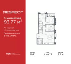 Продается 3-комн. квартира с отделкой в ЖК ''RESPECT'' на 12 этаже. Общая площадь: 93.77 кв.м., жилая: 37.95 кв.м., площадь просторной кухни-столовой: 29.57 кв.м. Угловая квартира, идеально подойдет любителям тишины и панорамных видов. В квартире одна лоджия, два совмещенных санузла. Высота потолков 2.7 м. Квартира находится в корпусе 4.1. Дом монолитный, одноподъездный, высотой 13 этажей. На этаже 7 квартир. В подъезде 1 пассажирский и 1 грузовой лифт. Начало строительства - 1 квартал 2026 года. Окончание строительства - 4 квартал 2027 года. Оформление сделки по договору долевого участия. В шаговой доступности от жилого комплекса находятся станции метро (расстояние по прямой): ''Лесная'' (800 м), ''Площадь Мужества'' (1.4 км), ''Выборгская'' (1.9 км), также недалеко от этого корпуса расположены станции метро: ''Академическая'', ''Политехническая''. Квартал строится на Полюстровском пр, 87, в одной из самых востребованных локаций Петербурга. В 10 минутах пешком - метро ''Лесная'' и в 10 минутах на транспорте - Петроградская сторона. Высота домов от 7 до 13 этажей. На территории Respect строится школа на 1125 учащихся и детский сад на 240 мест. Запроектированы собственная газовая котельная, закрытая территория, дворы без машин и подземные паркинги с лифтами. Вентилируемые фасады облицованы клинкерным кирпичом. Дома из этого материала служат веками, являясь гордостью хозяев. Дизайн парадных зон и входных групп - сочетание лаконичности отделки и декоративных элементов с текстурами из натурального камня и дерева с приглушенной подсветкой теплым светом. Во входных группах расположены гостевые зоны с мягкой мебелью. Вся территория квартала будет связана единой концепцией благоустройства, разработанной ландшафтным бюро L.BURO. В основе - идея создания увлекательного ландшафтного пространства для насыщенной жизни, включающего в себя пейзажные зоны, современные архитектурные композиции, открытые террасы на стилобатах с зонами отдыха и парклетами, спортивными площадками. Это пространство для людей всех возрастов и различных увлечений. На эксплуатируемой кровле на уровне первого этажа в домах 1 и 4 будут обустроены общественные видовые террасы. В квартале запроектированы внутренние закрытые территории дворов домов без доступа автомобилей и безбарьерная среда для велосипедистов и колясок. Предусмотрены IP-домофония с функцией дистанционного открывания калиток и парадных, а также дистанционный сбор показаний счетчиков и мобильное приложение для жителей. Для безопасности жителей квартала - круглосуточное видеонаблюдение и служба охраны. В каждой квартире предусмотрены внешние корзины для кондиционеров. #2Mdbsi