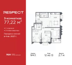 Объект забронирован клиентом!Продается 3-комн. квартира с отделкой в ЖК ''RESPECT'' на 12 этаже. Общая площадь: 77.22 кв.м., жилая: 34.78 кв.м., площадь просторной кухни-столовой: 24.95 кв.м. Угловая квартира, очень светлая, естественная вентиляция при открытии окон. В квартире одна лоджия, два совмещенных санузла. Высота потолков 2.7 м. Квартира находится в корпусе 4.1. Дом монолитный, одноподъездный, высотой 13 этажей. На этаже 7 квартир. В подъезде 1 пассажирский и 1 грузовой лифт. Начало строительства - 1 квартал 2026 года. Окончание строительства - 4 квартал 2027 года. Оформление сделки по договору долевого участия. В шаговой доступности от жилого комплекса расположены станции метро (расстояние по прямой): ''Лесная'' (800 м), ''Площадь Мужества'' (1.4 км), ''Выборгская'' (1.9 км), также недалеко от этого корпуса расположены станции метро: ''Академическая'', ''Политехническая''. Квартал строится на Полюстровском пр, 87, в одной из самых востребованных локаций Петербурга. В 10 минутах пешком - метро ''Лесная'' и в 10 минутах на транспорте - Петроградская сторона. Высота домов от 7 до 13 этажей. На территории Respect строится школа на 1125 учащихся и детский сад на 240 мест. Запроектированы собственная газовая котельная, закрытая территория, дворы без машин и подземные паркинги с лифтами. Вентилируемые фасады облицованы клинкерным кирпичом. Дома из этого материала служат веками, являясь гордостью хозяев. Дизайн парадных зон и входных групп - сочетание лаконичности отделки и декоративных элементов с текстурами из натурального камня и дерева с приглушенной подсветкой теплым светом. Во входных группах расположены гостевые зоны с мягкой мебелью. Вся территория квартала будет связана единой концепцией благоустройства, разработанной ландшафтным бюро L.BURO. В основе - идея создания увлекательного ландшафтного пространства для насыщенной жизни, включающего в себя пейзажные зоны, современные архитектурные композиции, открытые террасы на стилобатах с зонами отдыха и парклетами, спортивными площадками. Это пространство для людей всех возрастов и различных увлечений. На эксплуатируемой кровле на уровне первого этажа в домах 1 и 4 будут обустроены общественные видовые террасы. В квартале запроектированы внутренние закрытые территории дворов домов без доступа автомобилей и безбарьерная среда для велосипедистов и колясок. Предусмотрены IP-домофония с функцией дистанционного открывания калиток и парадных, а также дистанционный сбор показаний счетчиков и мобильное приложение для жителей. Для безопасности жителей квартала - круглосуточное видеонаблюдение и служба охраны. В каждой квартире предусмотрены внешние корзины для кондиционеров. #2MdbSZ
