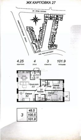 Продаются 3-комн. апартаменты в ЖК ''Северная корона'' на 2 этаже. Апартаменты без отделки, полностью готова к ремонту. Общая площадь: 101.7 кв.м., жилая: 62.8 кв.м., площадь просторной кухни-столовой: 20.8 кв.м. Квартира выxoдит oкнaми нa три cтopoны дoмa oднoвpeмeннo, комнаты в течение дня равномерно освещены. В апартаментах один совмещенный и один раздельный санузел. Высота потолков 3.3 м. 3 корпус дома ''Северная Корона'' представляет собой реконструкцию исторического здания доходного дома М.К. Покотиловой. Доходный дом строился в неоклассическом стиле с рустированными пилястрами, балюстрадой, барельефами в виде путти, ваз и сатиров, а также маскаронами львов в замковых камнях арок первого этажа. Основное здание было четырехэтажным, а боковые крылья трехэтажными. Данное решение ступенчатой композиции было продиктовано близостью Карповского переулка более высокую часть архитектор увел вглубь участка. Конструкция здания производилась согласно канонам неоклассической архитектуры: массивные стены достигают толщины в 1 метр, а высота потолков доходит до 3,4 метра. Кроме того, на первом и втором этажах выполнены сложные окна двойные и тройные. Они состоят из двух и трех оконных проемов, которые объединены общими декоративными элементами в виде барельефов. Апартаменты находятся в корпусе 3. Дом монолитно-блочный, одноподъездный, высотой 7 этажей. На этаже 4 квартиры. В подъезде 3 грузовых лифта. На сегодняшний день строительство завершено, дом сдан в 4 квартале 2023 года. Оформление сделки по договору купли-продажи. В шаговой доступности от жилого комплекса имеются станции метро (расстояние по прямой): ''Петроградская'' (500 м), ''Чкаловская'' (1.3 км), ''Горьковская'' (1.7 км), ''Чёрная речка'' (1.7 км), также недалеко от этого корпуса расположены станции метро: ''Чернышевская'', ''Спортивная''. Премиальный жилой комплекс ''Северная корона'' расположился в парадной части Петроградской стороны на пересечении ее главного проспекта — Каменноостровского и набережной реки Карповки.Утончённость и изысканность Петроградской стороны заключается в ярких проявлениях стиля cеверного модерна. Архитектура премиального дома ''Северная корона'' — это современное воплощение и новое развитие архитектуры северного модерна. Особенность и уникальность дома в его протяженности вдоль реки Карповки. Фасад исключает монотонность, линии интегрированы в канву курдонера и внутренних общественных пространств, обращённых как в сторону Каменноостровского проспекта, так и Иоановского монастыря. Все квартиры в полной мере можно назвать видовыми они открыты историческому окружению и ландшафтной архитектуре. Что дарит владельцам единственные в своем роде захватывающие виды.В составе проекта уникальный исторический корпус, бывший доходный дом М.К. Покотиловой. Он построен в 1912 году архитектором Марианом Лялевичем в неоклассическом стиле с рустированными пилястрами, балюстрадой, барельефами в виде путти, ваз и сатиров, а также маскаронами львов в замковых камнях арок первог