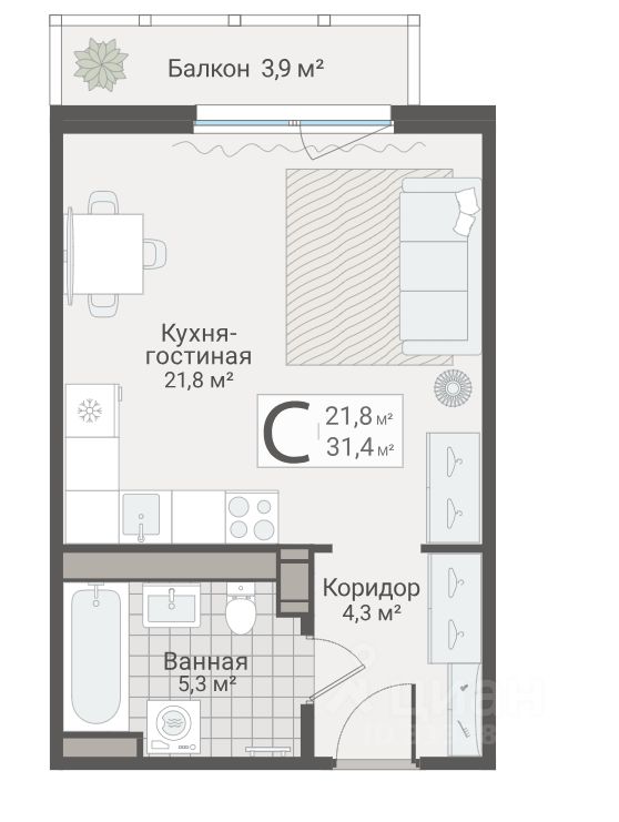 31 м² · Этаж 9 из 13