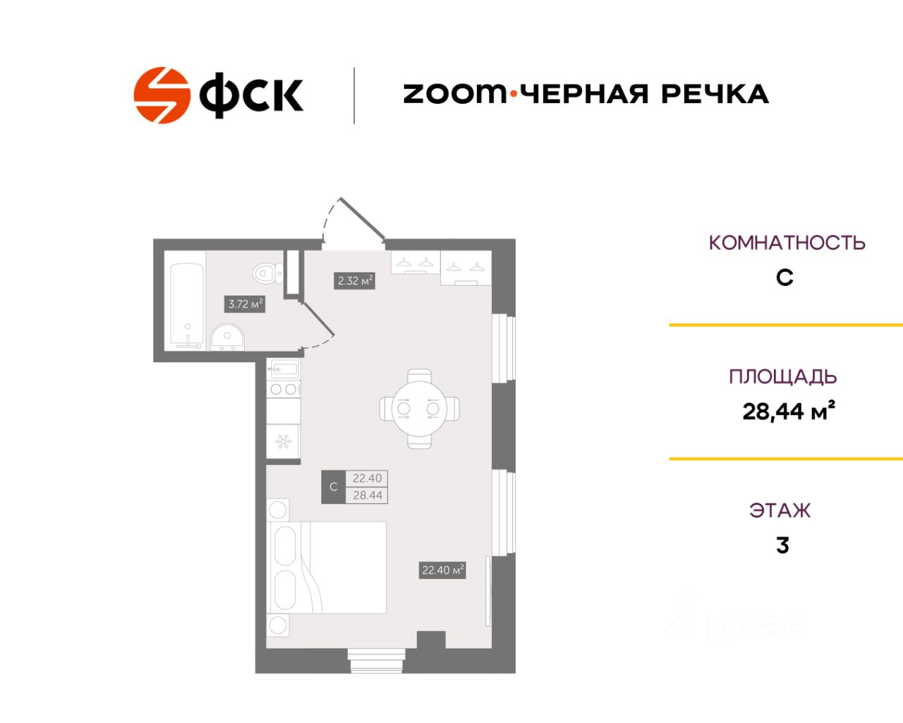 Цена со специальной скидкой в прямой продаже от застройщика — только в этом месяце. Апартамент-студия в комплексе класса бизнес-лайт Zoom Чёрная Речка на 3-м этаже. Общая площадь 28,44. Чистовая отделка. Zoom Черная речка это новый комплекс класса бизнес-лайт от крупного федерального застройщика ФСК. Zoom Черная речка расположен в престижном Приморском районе непосредственно на берегу Черной речки. В нем есть все необходимое для жителей разных возрастов и интересов от отапливаемого подземного паркинга и круглосуточного видеонаблюдения до коворкинга на открытом воздухе, интерактивных детских площадок и зон отдыха. Собственная набережная будет оборудована деревянными настилами и скамейками, благодаря чему вы сможете с комфортом проводить время у воды. Лобби на первом этаже современное и стильное пространство, где вы можете выпить кофе, подождать такси или поработать с ноутбуком. В отдельных лотах предусмотрено все для оборудования камина. Новый уровень уюта в вашем доме. Приобретение возможно в том числе с помощью ипотеки и рассрочки.