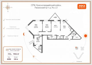 ПРЕДЛОЖЕНИЕ С ДИЗАЙНЕРСКИМ РЕМОНТОМ И ОБСТАНОВКОЙ! Продается 4к.кв. В ЖК Duderhof club, дом бизнес класса на набережной Дудергофского канала, напротив Южно-Приморского парка. В развитом торгово-социальной инфраструктурой Красносельском р-не, в 20мин. Тр. от ст.м Автово, Кировский з-д, Ленинский пр-кт, в 15 мин. тр. От Стрельны и Петродворца, удобные заезды на КАД и ЗСД, в 10 мин. до яхт-клуба ''Балтиец''. Действующие поликлиника, 4 детских сада и 2 школы. Компания застройщик от семи шанхайских корпораций '' Балтийская жемчужина ЖК клубного типа с 4-5 эт. Кирпично-монолитными домами с просторными квартирами с частично свободной планировкой. Закрытая территория. Дом построен в 2016 г. Состоящий из 5 этажей, квартира расположена на среднем 3 этаже, с панорамными окнами на 3 стороны, вид в спальне на Дудергофский канал. Общая S 138,6 кв.м., прихожая с встроенным шкафом, кухня-гостиная оборудованна кухонным гарнитурном с встроенной техникой, простойной обеденной зоной 18,5 кв.м., в выходом на панорамно застекленную лоджию 10,2 кв.м, со вторым выходом в гостиную 16,7 кв.м, в центре зала установлена колонна из натурального оникса, с подсветкой, мастер спальня с двумя гардеробными, и совмещенным сан. узлом с душевой и джакузи, 2 детские спальни:20+15,5 кв.м., разделяющих игровой в 16,5 кв.м., второй совмещенный сан.узел с душевой, и прачечная. Все помещения выполнены по дизайн проекту. Использовались только высококачественные материалы и интерьерные решения. Установлена импортная сантехника. Продуманы до мелочей зоны освещения. Установлена и подключена система умный дом. В ЖК установлены бесшумные грузовые лифты, современная приточная система вентиляции помещений, индивидуальная тепловая станция в том числе по подогреву воды. Диспетчерская, система видеонаблюдения и подземная парковка. Инвестиционно привлекательный объект. Премиальное соседство. P.s: имеется 3 парковочных места в паркинге, готовы к продаже. По 1 мил. руб. ( за данную стоимость и приобретались). Прямая продажа. Один взрослый собственник по договору купли-продажи, с 2018 года. Документы готовы. Без обременений и долгов по жку. Просмотры возможны в любое удобное для вас время!