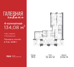 Просторная четырехкомнатная квартира в ЖК ''Галерная гавань'' на 12 этаже. Квартира без отделки, после оформления собственности можно делать ремонт. Общая площадь: 134.08 кв.м., жилая: 68.32 кв.м., площадь просторной кухни-столовой: 28.1 кв.м. Квартира - распашонка, без проходных комнат, окна выходят на paзные стороны дома. В квартире две лоджии, три совмещенных и один раздельный санузел. Наличие террасы в квартире дает возможность для создания зон отдыха в кругу семьи и друзей. Высота потолков 3.02 м. ''Галерная гавань'' — это жилой комплекс бизнес-класса в исторической части Васильевского острова — на берегу Галерной гавани, ведущей свою историю с 1724 года.В свою очередь, исторический Васильевский остров это университеты, школы, детские сады, поликлиники, несколько станций метро и прочая инфраструктура без проблем с транспортной доступностью. В ''Галерной гавани'' шесть корпусов на 813 квартир, площадью от 29,5 до 134 кв.м. Высота потолков 3 м. Два корпуса из шести всего на 20 квартир. На верхних этажах расположатся квартиры с большими террасами и панорамным остеклением. Также есть квартиры с французскими балконами и мастер-спальнями. Четыре квартиры из каждых пяти с видами из окон на тихую воду, на старые и новые городские символы. Паркинг займет весь подземный объем квартала, и будет вмещать 606 автомобилей. Фасады ''Галерной гавани'' выполняются в стиле баварской кирпичной кладки, с акцентами из керамогранита графитового оттенка. Объемы задаются ризалитами с художественной подсветкой. Для жителей будет создан комьюнити-клуб с переговорной и библиотекой, кинозалом, кофе-поинтом, детской комнатой с пространством для мастер-классов, фитнес-зоной, а также бьюти-кабинетом. ''Галерная гавань'' — это также первый в Петербурге жилой комплекс с общественным пространством у воды. ГК ''ПСК'' восстановит десять исторических зданий, в которых расположатся рестораны, кафе, фитнес-клуб с бассейном, культурное пространство, театр и офисы. При этом набережная будет превращена в пешеходную, в территорию общественного пространства. #2m9DTz