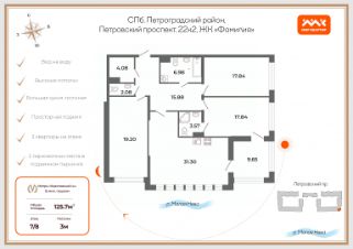 Просторная семейная квартира 161 кв. м с панорамными видами на Малую Невку и Лахта Центр. Эта светлая и уютная квартира — идеальный выбор для тех, кто ищет комфорт и качественную жизнь в престижной локации: вдали от городского шума, но в шаговой доступности от всех прелестей центра Санкт-Петербурга. Главной изюминкой квартиры станут захватывающие виды, особенно из просторной кухни-гостиной, откуда открывается живописная панорама на водную гладь Малой Невки.Продуманная планировка квартиры включает: светлую кухню-гостиную с зоной отдыха и обеденной группой, приватный блок мастер-спальни с гардеробной и ванной комнатой, 2 детские комнаты, гостевой санузел с душевой, хозяйственным блок, холл с местами для хранения. Детали интерьера отличаются элегантностью и утонченностью в сочетании с неотъемлемыми для комфортной жизни техническими элементами. Ключевой аспект успешного интерьера - баланс между функциональностью и эстетикой - соблюден полностью. Мебель, предметы интерьера и текстиль подобраны с особой тщательностью и выглядят безупречно. Применены исключительно люксовые материалы: натуральный камень, ценные породы дерева, мебель и техника от ведущих европейских производителей. Для комфорта проживания и безопасности - система кондиционирования и сигнализация. В квартире выполнена дополнительная гидро и шумоизоляция. В комплексе создан максимальный уровень безопасности и комфорта, благодаря закрытой охраняемой территории с контролем доступа, круглосуточному видеонаблюдению, уютному благоустроенному двору с детской площадкой и удобному подземному паркингу.Петровский остров одно из уникальных мест Петербурга, тихое, с благоприятной экологией. Один из островов в дельте Невы, расположенный в Петроградском районе. Остров утопает в зелени.В непосредственной близости находится современный Петровский парк, благоустроенный сад им. Савиной и популярный Приморский парк Победы. Также в ближайшем окружении спортивные объекты: олимпийский ''Центр художественной гимнастики ''Жемчужина'', ДЮСШ ''Локомотив'', Ледовый дворец СКА, стадион ''Петровский''.Развитая транспортная логистика, значительно упрощает передвижение по городу и за его пределами, что особенно важно для тех, кто ценит удобство и скорость. Возможность быстро добраться до исторического центра Санкт-Петербурга или до Курортного района делает Петровский остров еще более привлекательным и является перспективным районом для тех, кто ищет гармоничное сочетание природы и городской жизни.