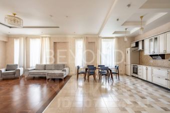Предлагается к продаже просторная 4-комнатная квартира площадью 175 кв. м с дизайнерским ремонтом от студии Art Spice.При входе — удобный холл с гостевым санузлом, постирочной зоной и техникой Miele.Гостиная зонирована на комфортные функциональные пространства. Здесь - мраморная декоративная стена с интегрированной дверью, паркет из американского ореха, светильники итальянских брендов, акустика Bang Olufsen, ковёр из шёлка ручной работы, диван и кресло Eichholtz. В обеденной зоне — мраморный стол и стулья Casa Milano.Кухня — итальянская Rossana, оснащена встроенной техникой премиум-уровня Gaggenau и Miele: холодильник, духовой шкаф, варочная панель, посудомоечная и кофемашина, винный шкаф, вакууматор.В квартире три спальни. Две детские с отдельными гардеробными и встроенными шкафами легко трансформируются под кабинет или гостевую. Ванная комната для детей оборудована ванной, душем и умывальником.Мастер-спальня выполнена в концепции private suite: просторная комната с панорамными окнами, паркетом, шторами с электроприводом, отдельной зоной для чтения и работы. Большая гардеробная с мраморным островом и дизайнерской люстрой Corbett создаёт ощущение загородного дома. Ванная отделана двумя породами мрамора, оборудована душевой, отдельно стоящей ванной и двойными раковинами, сантехникой Axor и Gessi. Установлена кровать 22 м с матрасом швейцарского бренда Trois Couronnes, акустика Bose, телевизор Sony.Интерьер продуман до мелочей: установлена приточно-вытяжная вентиляция, конвекторное оборудование с регулировкой температуры, система видеонаблюдения и охранная сигнализация с фото- и видеофиксацией.Из окон открывается вид на благоустроенный закрытый двор с ландшафтным дизайном и круглосуточной охраной. На территории — три детские площадки, прогулочная набережная, доступ к спортивному комплексу ''Динамо'' (футбол, теннис, волейбол).На первых этажах дома расположены рестораны Mina и Yng, бутики, салоны красоты, массажный SPA, барбершоп, студия бокса, магазины, включая ''Азбуку вкуса''. Для автовладельцев предусмотрен удобный паркинг, возможна покупка двух больших машино-мест рядом с лифтом.