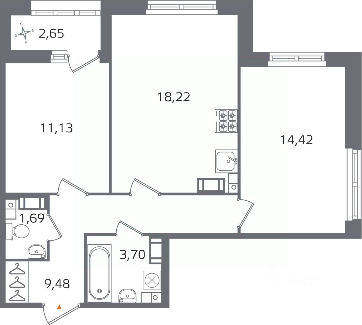 Продажа двухкомнатных квартир в Калининском районе районе в Санкт-Петербурге