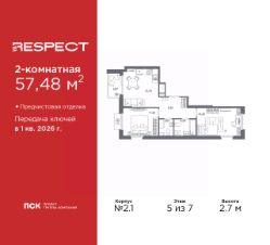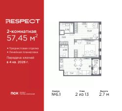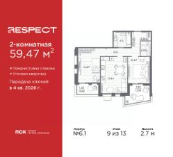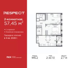 Продается 2-комн. квартира с отделкой в ЖК ''RESPECT'' на 9 этаже. Общая площадь: 55.11 кв.м., жилая: 23.32 кв.м., площадь просторной кухни-столовой: 15.05 кв.м. Комнаты изолированные, все окна выходят на одну сторону. В квартире один балкон и одна лоджия, два совмещенных санузла. Терраса представляет собой роскошную зону отдыха для проведение вечеров в кругу семьи и друзей или организация вечеринок. Высота потолков 2.7 м. В ЖК Respect представлены два варианта чистовой отделки: светлая и тёмная. Потолки: натяжные или выравнивание с окраской,Окна: из ПВХ профиля с двухкамерным стеклопакетом,Остекление балконов и лоджий: алюминиевое однослойное,Полы: покрытие из ламината, полы санузлов: керамическая плитка или керамогранит,Стены: обои под окраску, стены санузлов: керамическая плитка или керамогранит.Установлены межкомнатные двери.Санузел: раковина с тумбой, ванна или душевая кабина, унитаз, смесители. Выполнена полная разводка электропроводки. Квартира находится в корпусе 6. Дом монолитный, одноподъездный, высотой 13 этажей. На этаже 8 квартир. В подъезде 1 пассажирский и 1 грузовой лифт. Окончание строительства - 4 квартал 2026 года. Оформление сделки по договору долевого участия. В шаговой доступности от жилого комплекса имеются станции метро (расстояние по прямой): ''Лесная'' (800 м), ''Площадь Мужества'' (1.4 км), ''Выборгская'' (1.9 км), также недалеко от этого корпуса расположены станции метро: ''Академическая'', ''Политехническая''. Жилой квартал ''RESPECT'' строится на Полюстровском пр, 87, в одной из самых востребованных локаций Петербурга. В 10 минутах пешком - метро ''Лесная'' и в 10 минутах на транспорте - Петроградская сторона. Высота домов от 7 до 13 этажей. Квартиры сдаются с отделкой white box и с чистовой отделкой. На территории Respect строится школа на 1125 учащихся и детский сад на 240 мест. Запроектированы собственная газовая котельная, закрытая территория, дворы без машин и подземные паркинги с лифтами.В проекте предусмотрены трапециевидные балконы или остекленные лоджии, которые, с одной стороны, исключают монотонность фасада, являясь декоративными элементами, с другой дополнительным функциональным пространством в квартирах. Цветовая гармония фасадов каждого дома раскрывает характер квартала. Коричневый цвет клинкерного кирпича со структурой водяных штрихов — цвет уюта и безопасности, сдержанности и надёжности. Вентилируемые фасады облицованы клинкерным кирпичом. Его высокая прочность позволяет давать 100 лет гарантии на этот материал. Водопоглощение клинкерного кирпича составляет менее 5%, за счет чего у него высокая теплопроводность и прочность. В квартале запроектированы внутренние закрытые территории дворов домов без доступа автомобилей и безбарьерная среда для велосипедистов и колясок. Предусмотрены IP-домофония с функцией дистанционного открывания калиток и парадных, а также дистанционный сбор показаний счетчиков и мобильное приложение для жителей. Для безопасности жителей квартала - круглосуточное видеонабл