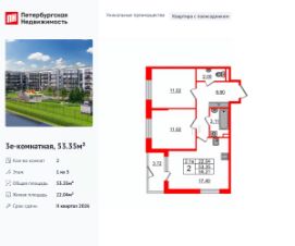 Продается уютная 2-комнатная квартира от застройщика в жилом комплексе ''Парадный ансамбль'' в престижном Московском районе.До метро можно добраться на транспорте всего за 20 минут.Уникальная, функциональная европланировка, большая кухня-гостиная 17.4 м², просторная прихожая 8.8 м². Общая площадь квартиры - 53.35 м², жилая 22.04 м², высота потолка 2.77 м.Квартира продается с отделкой ''NORD LINE WHITE''.Что особенного в ЖК ''Парадный ансамбль''?• Инновационный Лицей Setl с оригинальной архитектурной концепцией и уникальной образовательной средой• Масштабное малоэтажное строительство в престижном Московском районе• Рекреационные зоны: парадный парк в центре квартала, ручей с собственной набережной, центральная площадь, ресторанный комплекс и пешеходный бульвар• Фасады из керамогранита и кирпича с яркими и акцентными входными группами• Две самые большие площадки Setl Kids и Setl Sport• Уникальные квартиры.High Flat на последних этажах, палисадники у квартир на первом этаже, семейные секции, квартиры с саунами и окном в ванной
