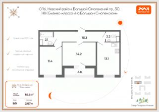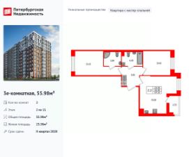 Предлагается к продаже евротрешка в современном ЖК ''Невские паруса'' с видом на Неву.Общая площадь квартиры - 55.3 кв.м. + балкон 4.3 кв.м.Кухня-гостиная- 17.2 кв.м.Спальня 1 - 10 кв.м.Спальня 2 - 14.1 кв.м.Квартира светлая, по два окна на кухне и в одной из спален.В квартире остаётся вся мебель.Благоустроенный закрытый двор, детские и спортивные площадки, обустроенная набережная. Во дворе школа и детский сад.Один совершеннолетний собственник, прямая продажа, полная стоимость в договоре.При необходимости поможем с оформлением ипотеки по максимально выгодной в данный момент ставке.Ждём Ваших звонков, уважаемые покупатели!