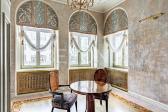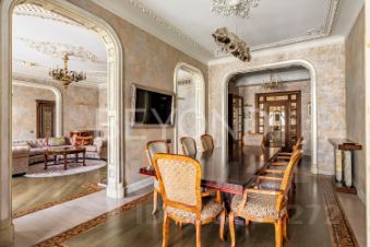 Предлагается к продаже роскошная резиденция около Таврического сада, выполненная в современном прочтении классического дизайна богемного Петербурга. Квартира занимает целиком весь барский третий этаж дома с эркерами и балконами. Отреставрированное историческое здание с металлическими и железобетонными перекрытиями.Резиденция общей площадью 453 кв. м спроектирована в просторных масштабах помещений. Существующая планировка включает в себя гостиный зал с действующим камином и балконом, столовую с чайным эркером, изолированную кухню с обеденной зоной и барной стойкой, родительскую мастер-спальню с балконом, эркером, гардеробной и ванной комнатами, отдельный детский блок с ванной и гардеробной, просторный гостевой блок с библиотекой, встроенной кухней и гардеробной, гостевую спальню, комнату для релакса и спортивных занятий (либо четвертую спальню) с душевой и гардеробной, холлы и прихожую. Высокие потолки 3,5 м. Отделка по дизайнерскому проекту, задействованы дорогостоящие материалы: массив дерева, натуральный камень, наборный авторский паркет, восстановленная историческая лепнина, эксклюзивная меблировка, предметы декора и искусства. Встроенная климатическая система приточно-вытяжной вентиляции, полное технически-бытовое оснащение резиденции.Фасадная классическая парадная с охраной, современный лифт. Круглосуточная служба ''консьерж 24'', видеонаблюдение. Автомобильные места на привилегированной парковке для проживающих перед домом, а также в современном отапливаемом паркинге в пешей доступности.Престижное месторасположение в историческом центре Санкт-Петербурга, в наиболее востребованном районе города напротив Таврического сада, в непосредственной близости исторических, культурных, административных и деловых доминант. Именно здесь исторически разместились посольства и представительства, администрации Санкт-Петербурга и Ленинградской области, Таврический дворец. Благодаря этому, место расположения дома является центром деловой и политической жизни Санкт-Петербурга. Неподалеку известные места Петербурга - Таврический сад, Музей Воды и музей Суворова, ансамбль и парковая зона Смольного собора.