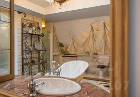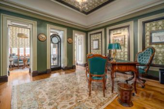 10 окон на Невку Потолки 4м.Реконструкция исторического особняка с территорией 50 соток. Премиальный ремонт с материалами от знаменитых брендов. Камин, кинотеатр, 3 спальни и многое другое.Собственный трехэтажный особняк с прилегающей территорией в 50 соток, на которой расположены летняя беседка и детская площадка. Охраняемая территория с подъездом к главному входу в особняк. Отдельные помещения для обслуживающего персонала, комната охраны и прачечная зона на цокольном этаже. Парадная мраморная лестница ведущая на первый этаж, на котором расположены два входа в квартиру. Уникальные характеристики объекта позволяют стать владельцем роскошного дома в Санкт-Петербурге.На первом этаже находится столовая: массивная деревянная кухня с большим островом, столешницей из мрамора, обтянутые светлой тканью кресла и камин. Посередине помещения стоит большой деревянный стол, перекликающийся по цвету с балками на потолке и напольным настилом. Из столовой можно перейти в домашний кинозал, оформленный в духе поп-арта 1960-х годов. За ним находится кабинет, созданный по всем законам классической традиции: стены и потолок затянуты темно-зеленым гобеленом, а кресла у стола из темного дерева обиты зеленой кожей. Веранду кабинета украшает кованая винтовая лестница, ведущая в винный погреб.Пространство этажей объединяет широкая лестница, ступени которой выполнены из дуба. На мансардном этаже располагаются две спальни, просторная ванная комната, а также место отдыха с панорамным остеклением. В интерьере использованы дорогостоящие премиальные бренды. Благодаря большому количеству окон и высокому потолку, особняк наполнен светом, а интересное планировочное решение позволяет найти место, как для большого приема гостей, так и для уютного уединения.
