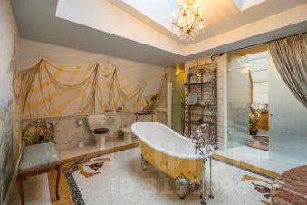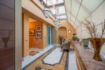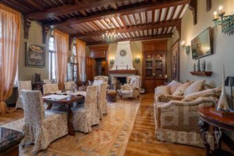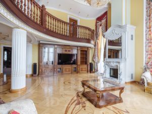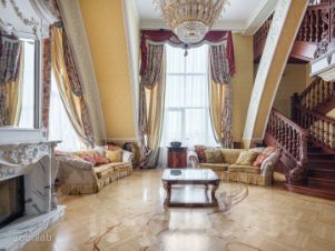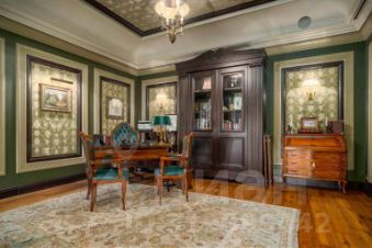 Исторический особняк напротив Елагина острова.Дорогостоящий ремонт с премиальными марками: Giorgetti, Devon&,Devon. Трехэтажный дом после реконструкции с собственной территорией в 50 соток. Отличная цена!Собственный трехэтажный особняк с прилегающей территорией в 50 соток, на которой расположены летняя беседка и детская площадка. Охраняемая территория с подъездом к главному входу в особняк. Отдельные помещения для обслуживающего персонала, комната охраны и прачечная зона на цокольном этаже. Парадная мраморная лестница ведущая на первый этаж, на котором расположены два входа в квартиру. Уникальные характеристики объекта позволяют стать владельцем роскошного дома в Санкт-Петербурге.На первом этаже находится столовая: массивная деревянная кухня с большим островом, столешницей из мрамора, обтянутые светлой тканью кресла и камин. Посередине помещения стоит большой деревянный стол, перекликающийся по цвету с балками на потолке и напольным настилом. Из столовой можно перейти в домашний кинозал, оформленный в духе поп-арта 1960-х годов. За ним находится кабинет, созданный по всем законам классической традиции: стены и потолок затянуты темно-зеленым гобеленом, а кресла у стола из темного дерева обиты зеленой кожей. Веранду кабинета украшает кованая винтовая лестница, ведущая в винный погреб.Пространство этажей объединяет широкая лестница, ступени которой выполнены из дуба. На мансардном этаже располагаются просторная гардеробная, две ванные комнаты, спортзал с панорамным остеклением крыши, а также 3 спальни. В интерьере использованы дорогостоящие премиальные бренды. Благодаря большому количеству окон и высокому потолку, особняк наполнен светом, а интересное планировочное решение позволяет найти место, как для большого приема гостей, так и для уютного уединения. Также есть уникальная возможность приобретения половины этого роскошного особняка, так как он разделен на две полноценные резиденции. Общая площадь 958,5 м².