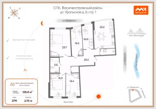 Продается просторная пятикомнатная квартира на Васильевском острове, расположенная на 7-м этаже 23-этажного современного дома. Объект предлагается единственным владельцем без каких-либо обременений. Квартира обладает редкой и продуманной планировкой, включающей гостиную, столовую, кухню, спальню, детскую, кабинет и два санузла. Из жилых комнат и двух балконов открываются панорамные виды на Вантовый мост, ЗСД, Гавань и яхт-клуб, а ориентация на две солнечные стороны обеспечивает обилие естественного света в течение всего дня.В объекте выполнен капитальный ремонт премиум-класса с применением натуральных материалов: мрамора, гранита и травертина. В отделке использованы итальянские сатиновые обои, широкие каменные подоконники и стеклянные распашные перегородки. Вся существующая мебель, техника и предметы интерьера, включая авторские картины, остаются новому владельцу. Особого внимания заслуживает инженерное оснащение: сантехника премиум-класса, электронная крышка-биде, джакузи в основном санузле и душевая кабина с функцией ''хамам'' в гостевом. Для круглогодичного комфорта установлены кондиционеры, а по всему периметру квартиры выполнена профессиональная шумоизоляция стен, пола и потолка.Дом обеспечивает высокий уровень безопасности благодаря круглосуточной службе консьержа и многоуровневой системе видеонаблюдения в помещениях, на этажах и на территории. Имеется подземный паркинг. Инфраструктура района развита: во дворе расположен новый корпус гимназии ''Земля и Вселенная'', в шаговой доступности — детские сады, школы, поликлиника, фитнес-клубы, супермаркеты и благоустроенные парковые зоны. Станция метро ''Приморская'' находится в пешей доступности. Это предложение представляет собой готовое решение для жизни семьи, где сочетаются безупречное качество отделки, выгодное расположение и комплекс сервисов для комфорта и безопасности.Код пользователя: 162432Номер в базе: 10654164