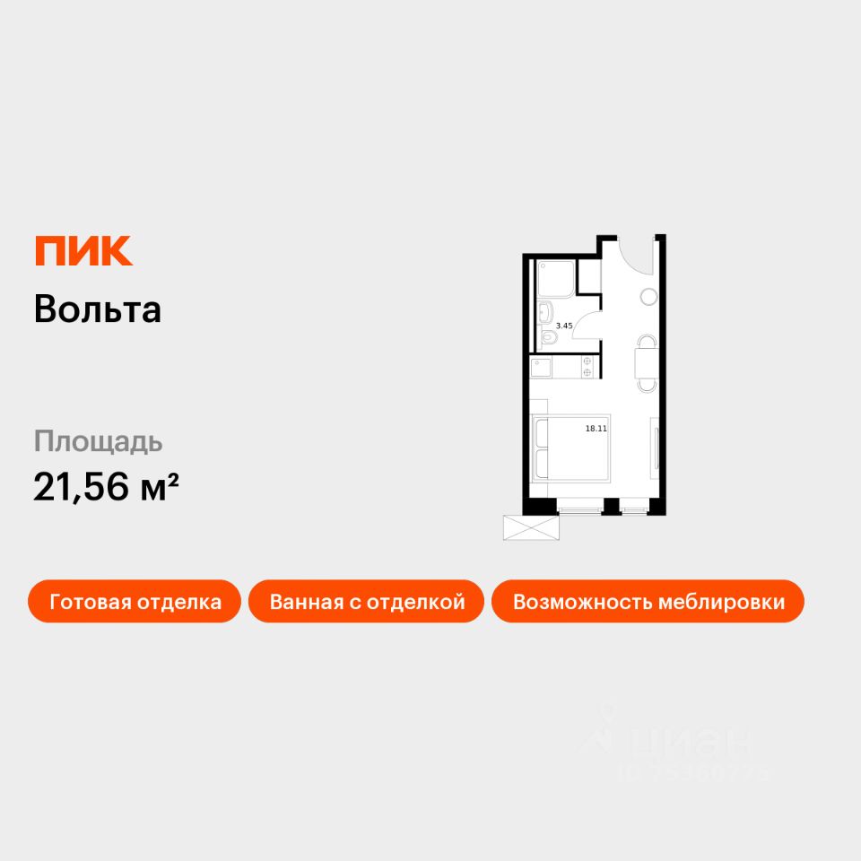 Продаются апартаменты-студия площадью 21,56 кв.м на 2 этаже 15 этажного дома (Вольта, Секция 1) проекта ПИК Вольта. ''Вольта'' - готовые апартаменты, которые можно приобрести для себя или сдавать через профессиональную управляющую компанию ''МТЛ''. Она возьмёт на себя заботы по обслуживанию и сдаче в аренду на короткий и длительный срок. Проект расположен недалеко от исторического и делового центра Санкт-Петербурга. Дорога на автомобиле до Невского проспекта займёт 15 минут. До станции метро ''Ладожская'' получится дойти за 8 минут, до двух остановок общественного транспорта - за минуту. Рядом находятся четыре вокзала и Свердловская набережная. На первом этаже предусмотрено просторное дизайнерское лобби, ресторан, круглосуточный ресепшен и кабинет врача. Кроме того, здесь появятся такие сервисы, как химчистка, прачечная, клининг, доставка продуктов, консьерж-сервис. Для прогулок возле реки Охты благоустроят набережную. Для автомобилей предусмотрена парковка и подземный паркинг. Артикул 818657 (Застройщик АО СЗ ''Ладожский'') [cn_sbp_1663045]