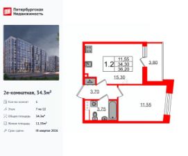 Продается просторная 1-комнатная квартира от застройщика в жилом комплексе ''Бионика Заповедная'' в динамичном Приморском районе.До метро можно добраться на транспорте всего за 11 минут.Удобная, классическая, функциональная европланировка, большая кухня-гостиная 17.25 м², вместительная прихожая 3.5 м². Общая площадь квартиры - 34.85 м², жилая 10 м², высота потолка 3 м.Квартира продается с отделкой ''Норд Лайн светлый плюс''.Что особенного в ЖК ''Бионика Заповедная''?• Оазис в городе 3 минуты пешком до Новоорловского заказника (140 ГА)• Захватывающие виды из окон на хвойный лесопарк• Всесезонный ''Заповедный парк'' во дворе площадью 23000 кв.м.• 5 единых входных групп с авторским дизайном и лаундж-зонами, сити-виллы на первых этажах с палисадниками и высотой потолков до 4 м• Места притяжения: фонтан ''Бионика'', спортивный кластер со скейт-парком, фотозоны с арт-объектами