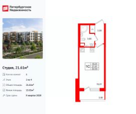 Продается уютная студия от застройщика в жилом комплексе ''Univer City'' в на юге Санкт-Петербурга.До метро можно добраться на транспорте всего за 30 минут.Удобная, классическая, функциональная европланировка, вместительная прихожая 3 м². Общая площадь студии - 21.61 м², жилая 15.01 м², высота потолка 2.77 м.Квартира продается с отделкой ''Норд Лайн серый''.Что особенного в ЖК ''Univer City''?• Малоэтажное строительство• Скандинавские фасады с отделкой керамогранитом, акцентные входные группы• Закрытые внутренние дворы без машин• Пешеходный променад с тематическими зонами, еловый сквер и яблоневый сад• Univer Park, включая SetlSport и SetlKids, площадку для выгула собак и зоны отдыха• Инновационный Лицей Setl с оригинальной архитектурной концепцией и уникальной образовательной средой
