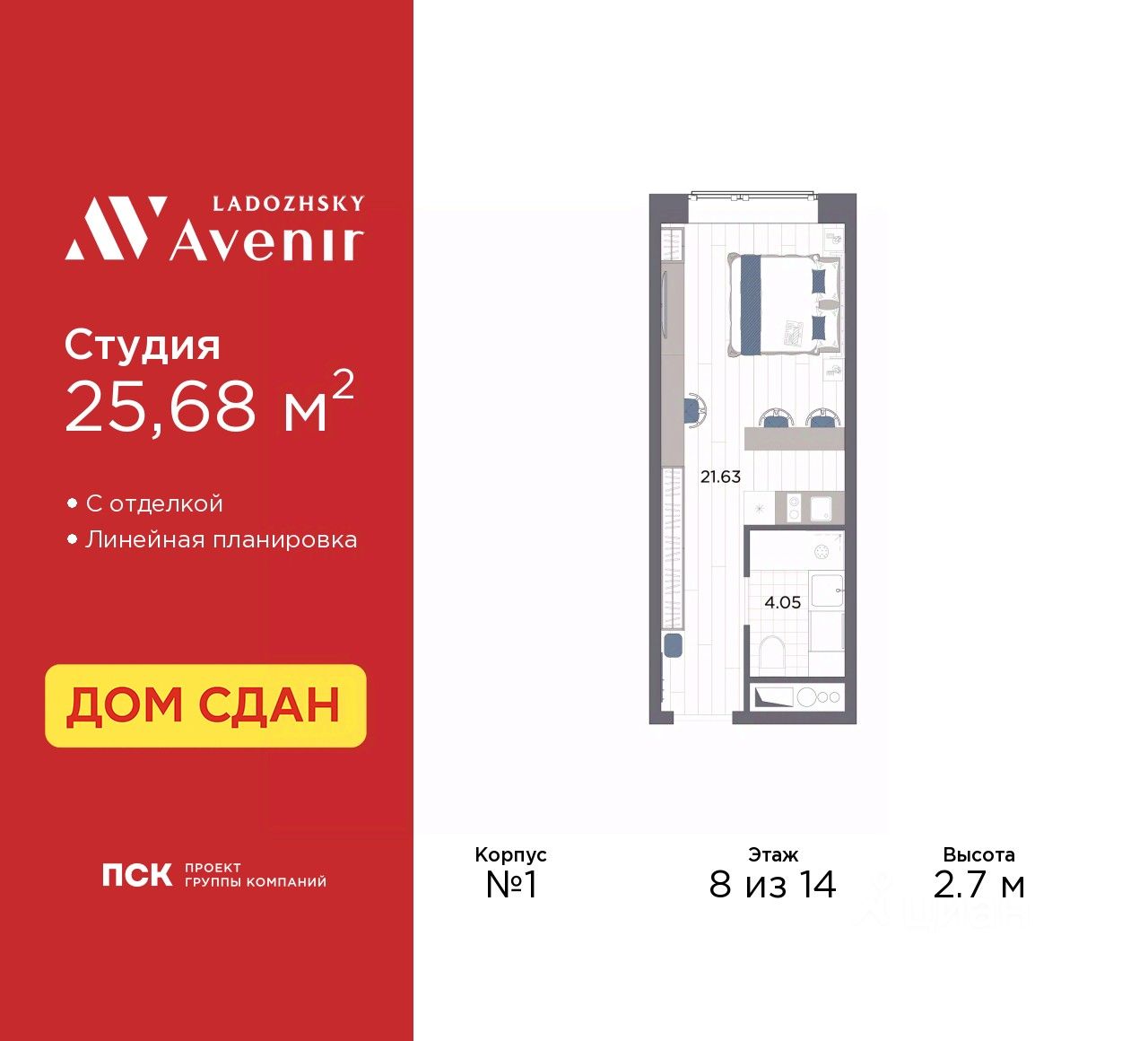 1-к, Заневский проспект, 65а Показать на карте